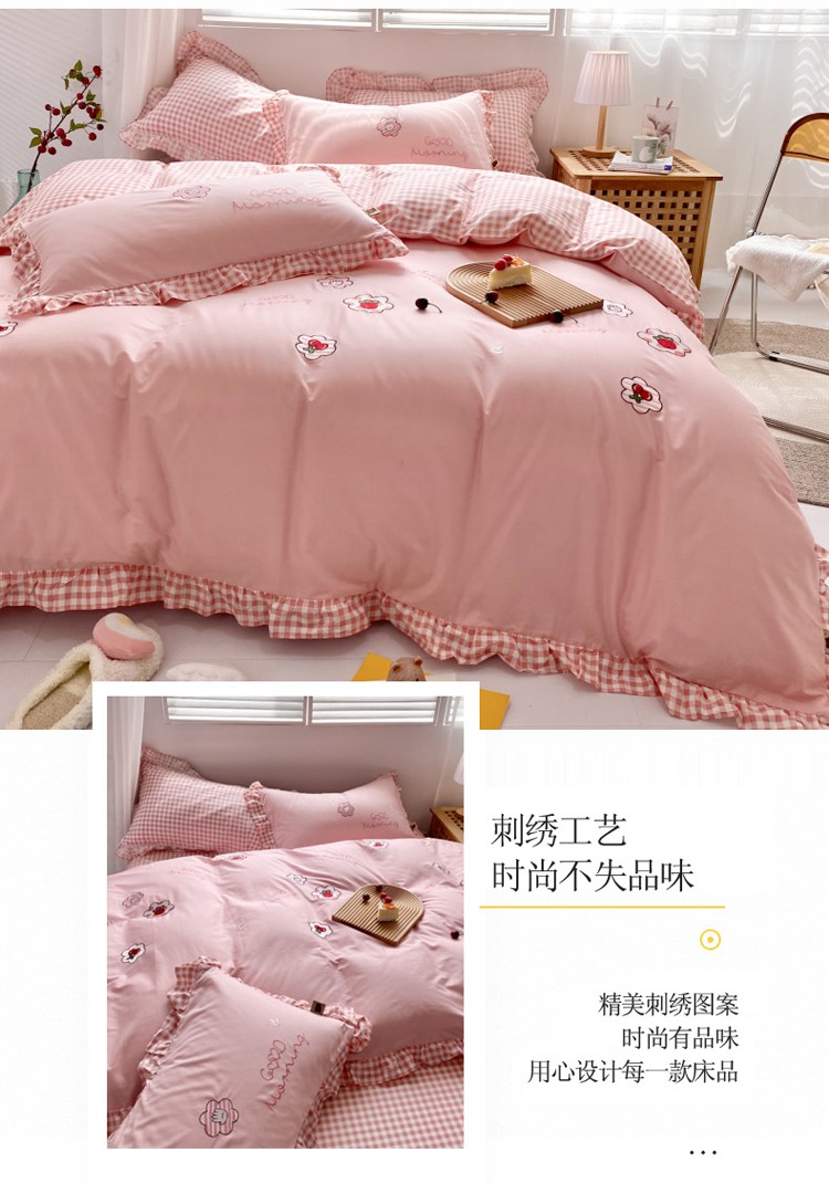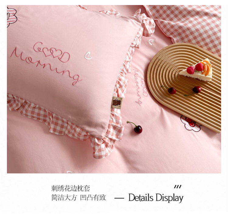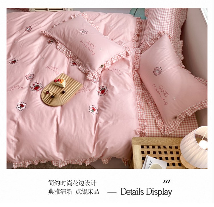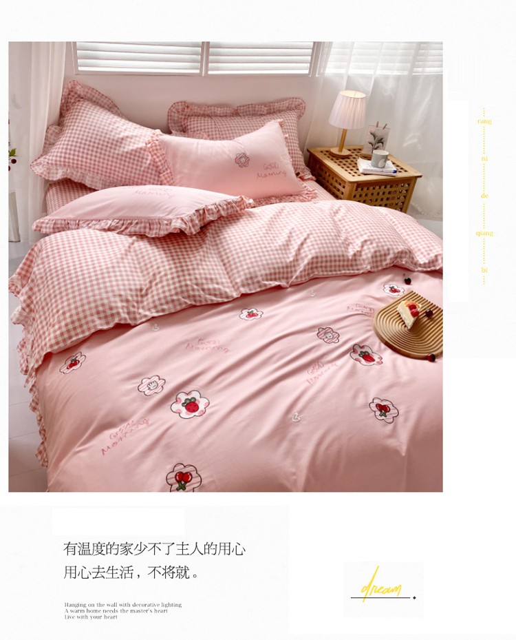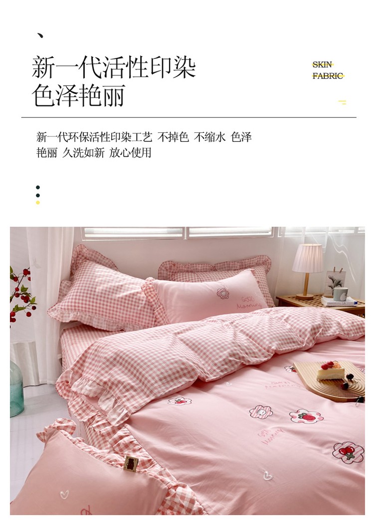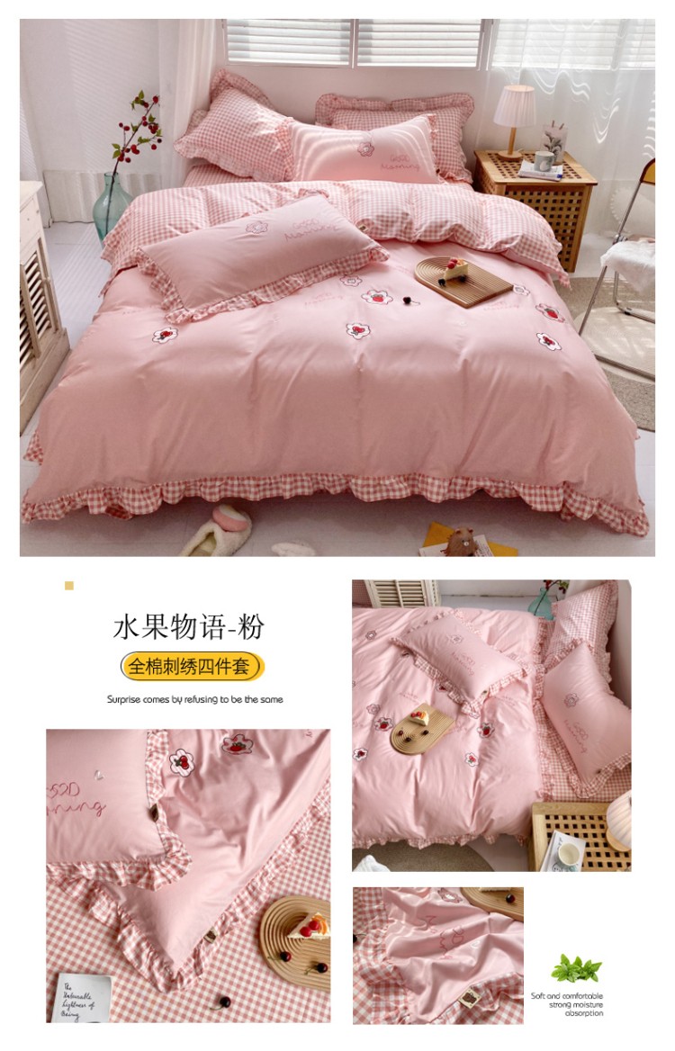 寐居 2021新款纯棉刺绣四件套 水果物语-粉