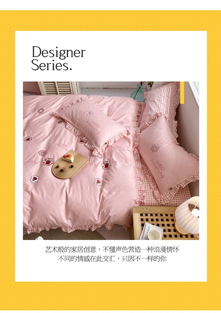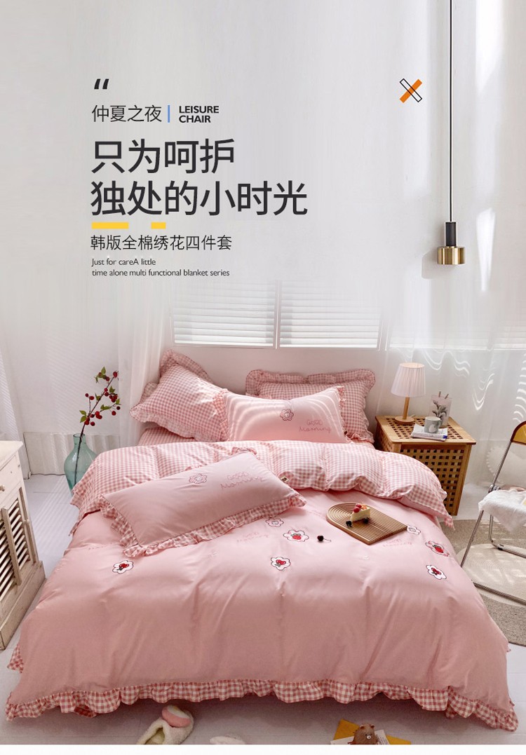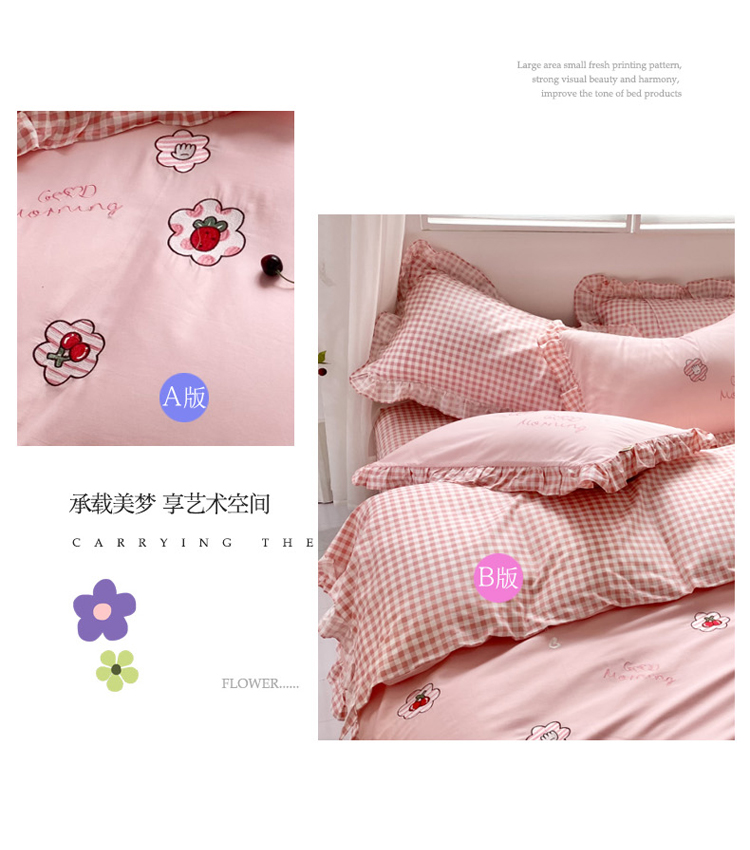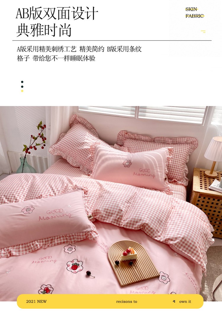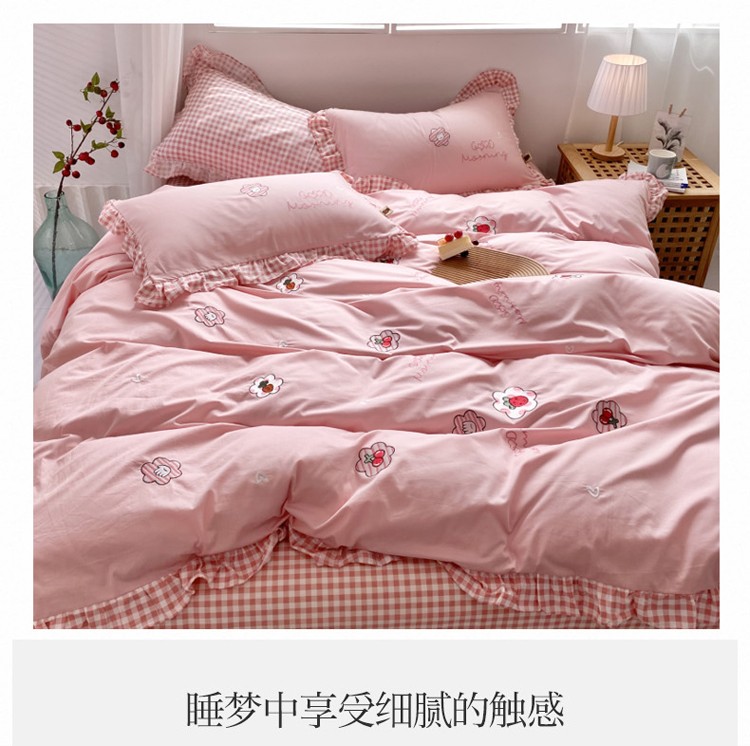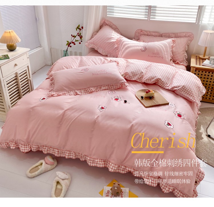 寐居 2021新款纯棉刺绣四件套 水果物语-粉