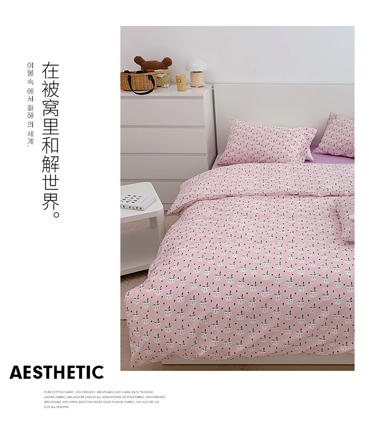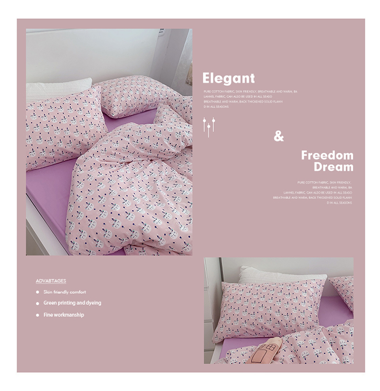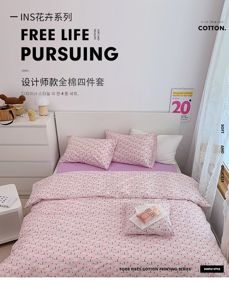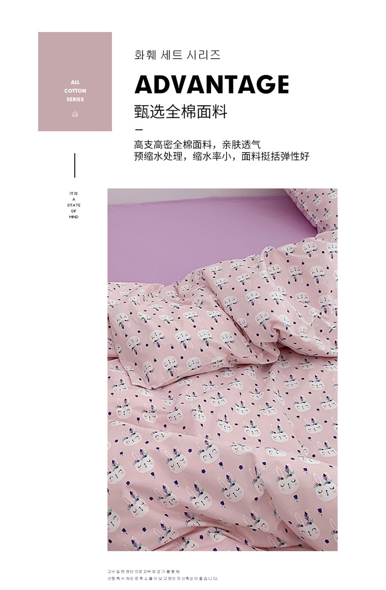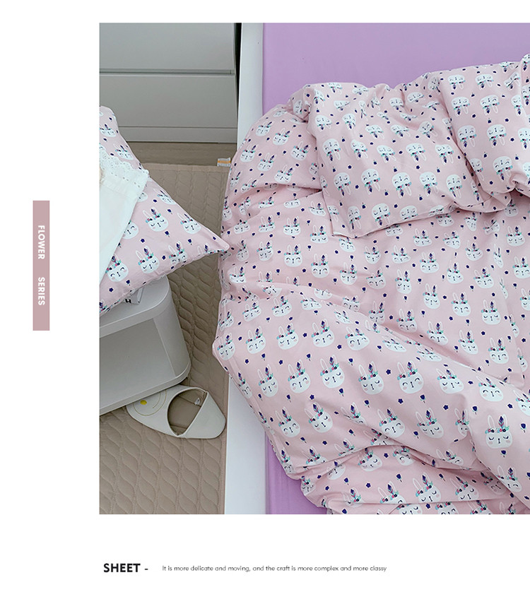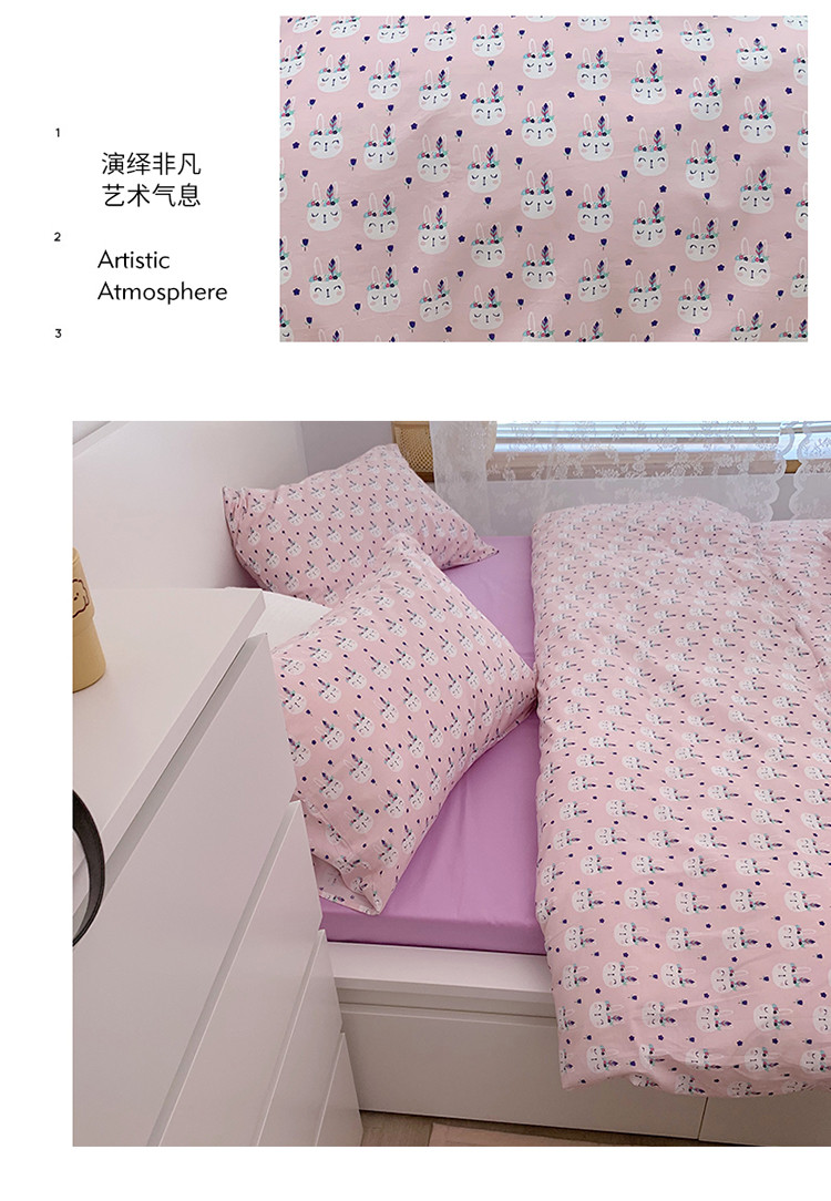 当前位置: 91家纺网 > 商品网购 > 床品套件 > 四件套 > 全棉普通四件套 > 尺素 全棉40支喷气13372韩国ins设计师四件套 小粉兔