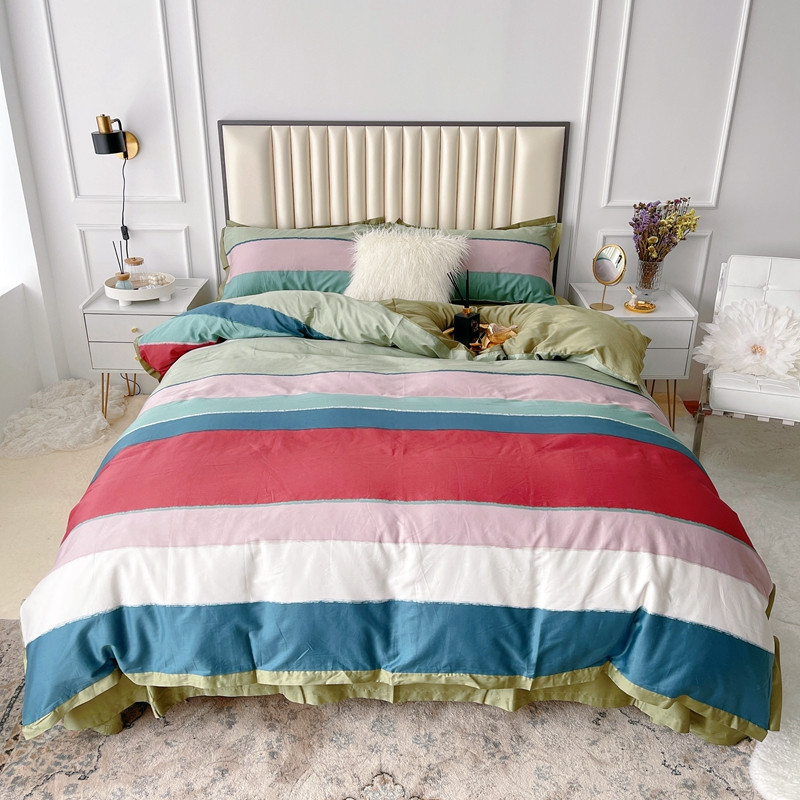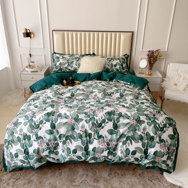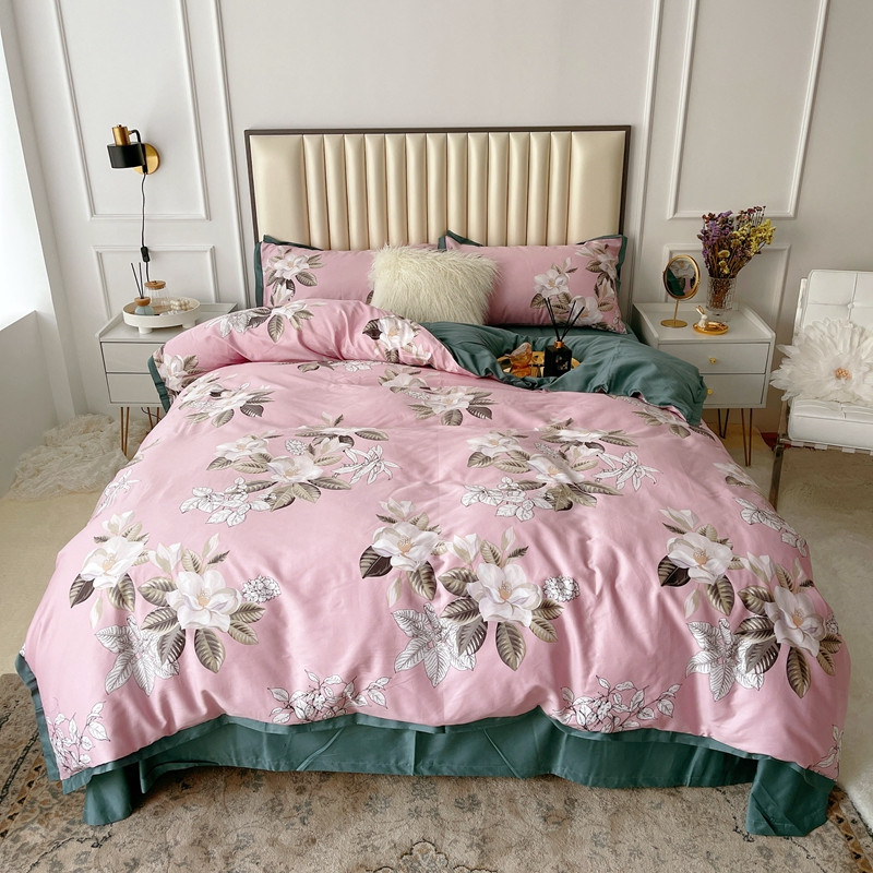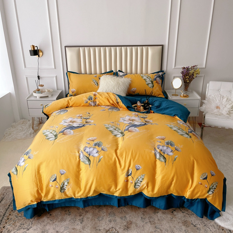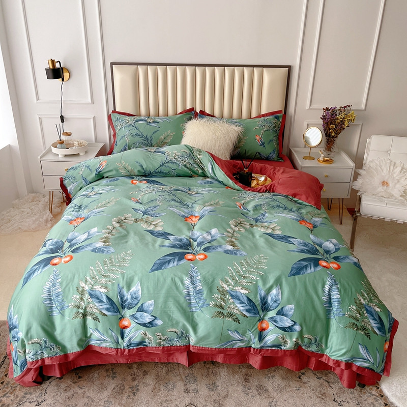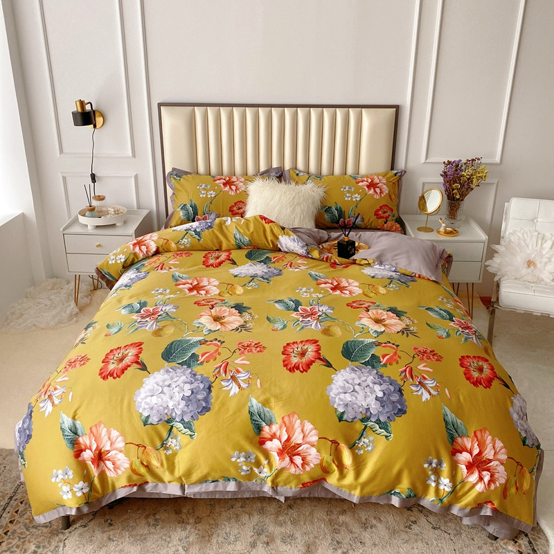 (总)蘭菲 2023新款60支贡缎长绒棉印花美式花卉四件套