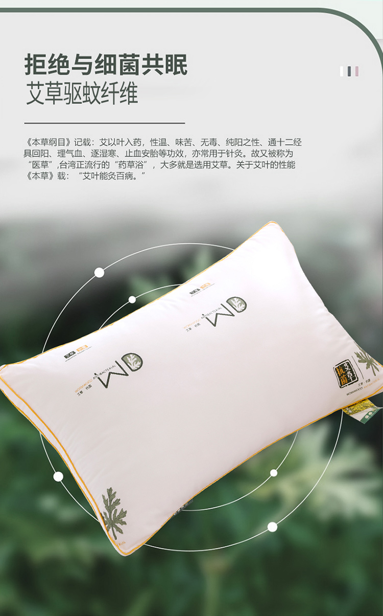 (总)皇冠之家 新款艾草抑菌枕芯艾草枕头
