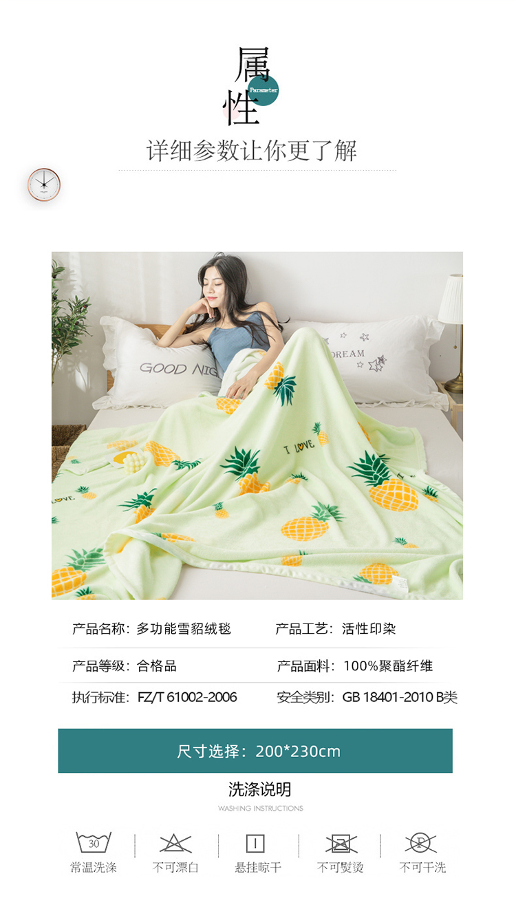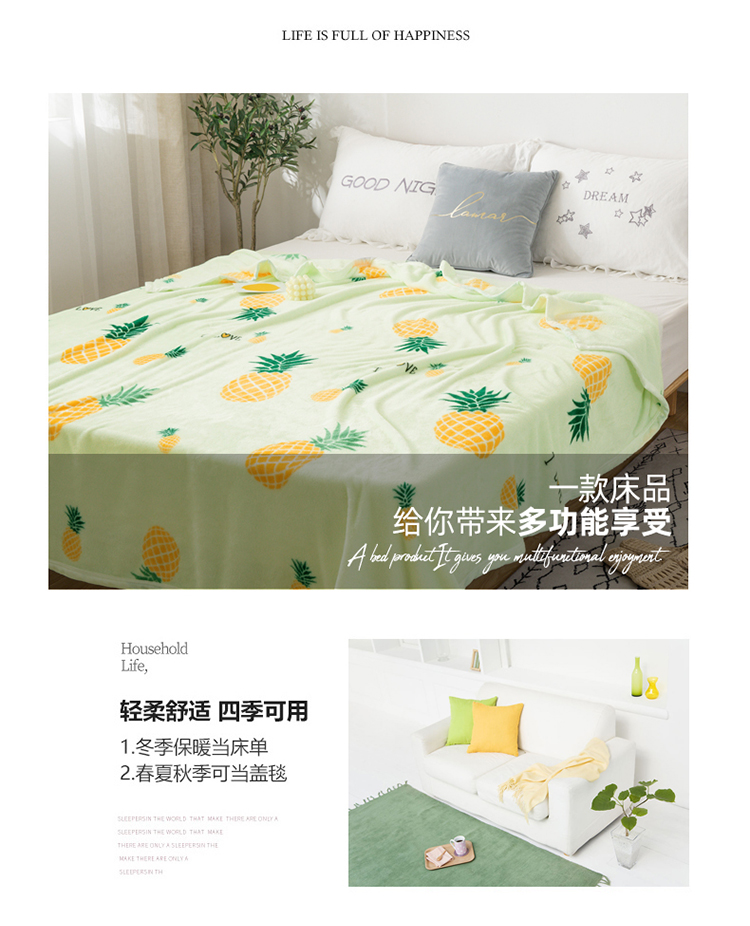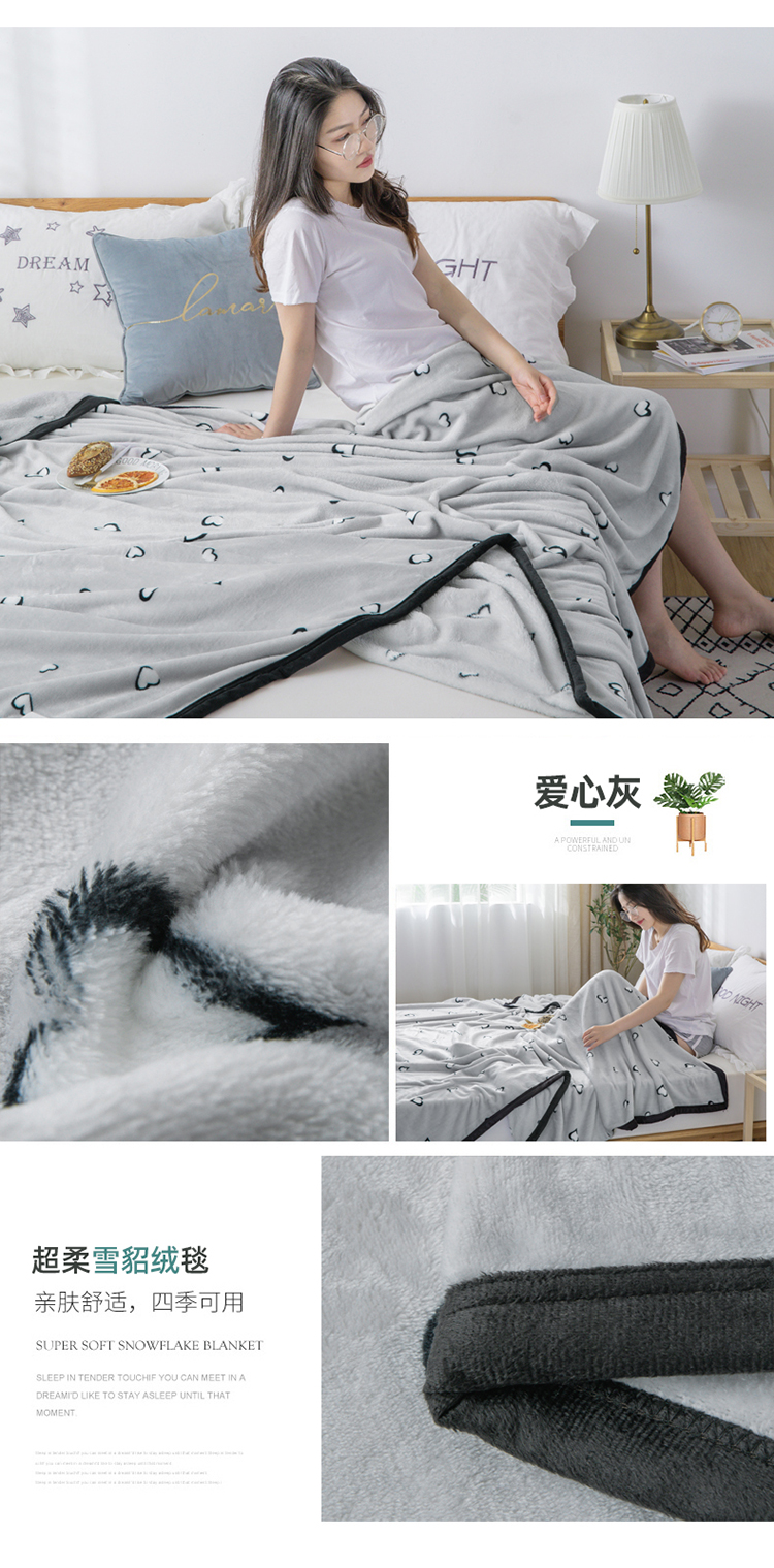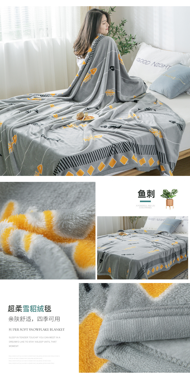 坦客毯业 2025年新款印花法莱绒毛毯沙发盖毯午睡毯子 简卉,简卉