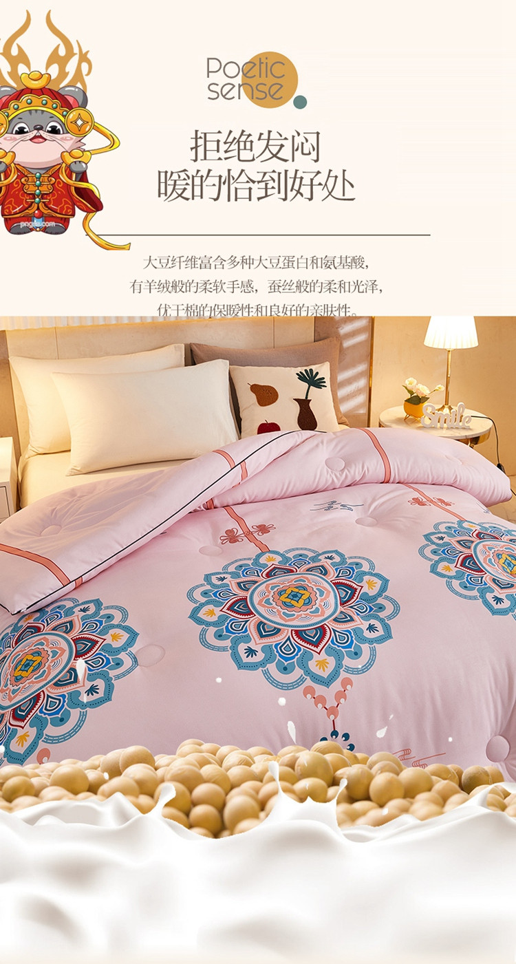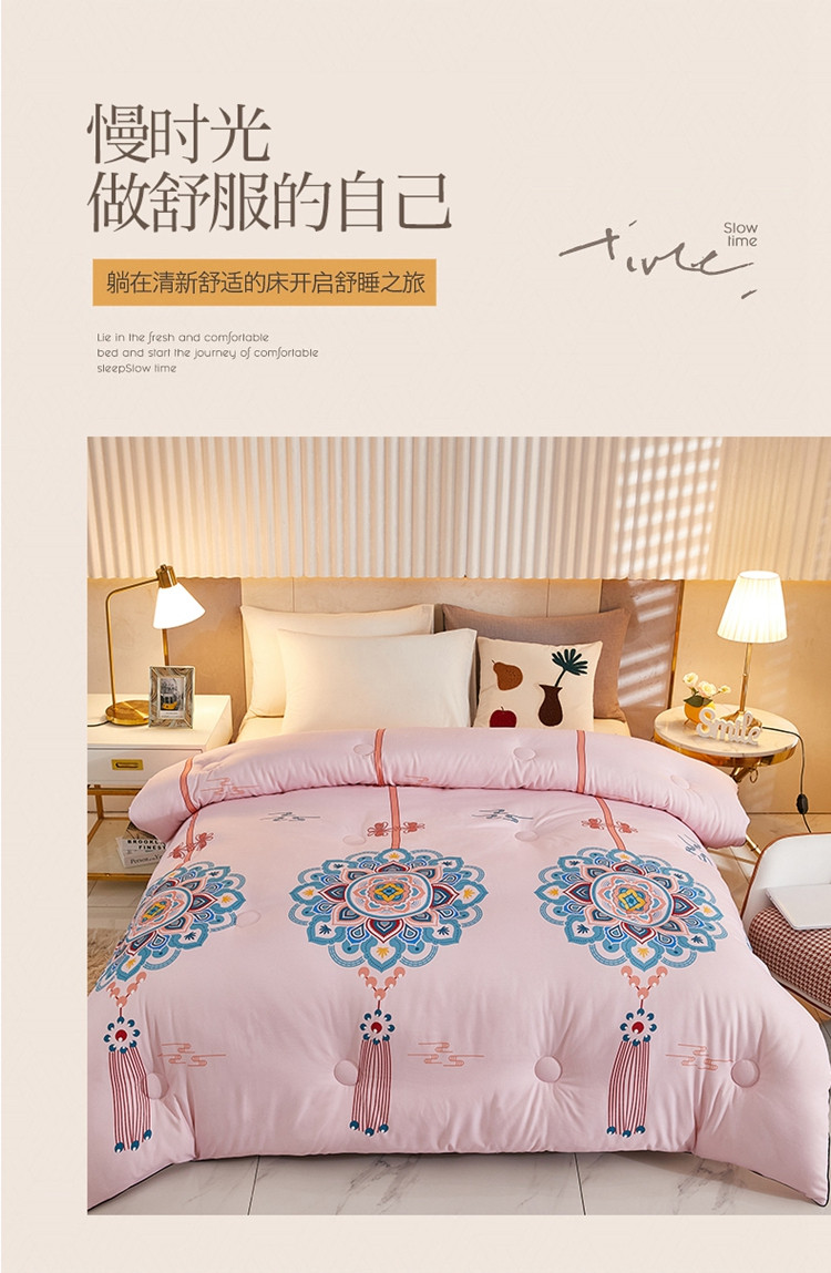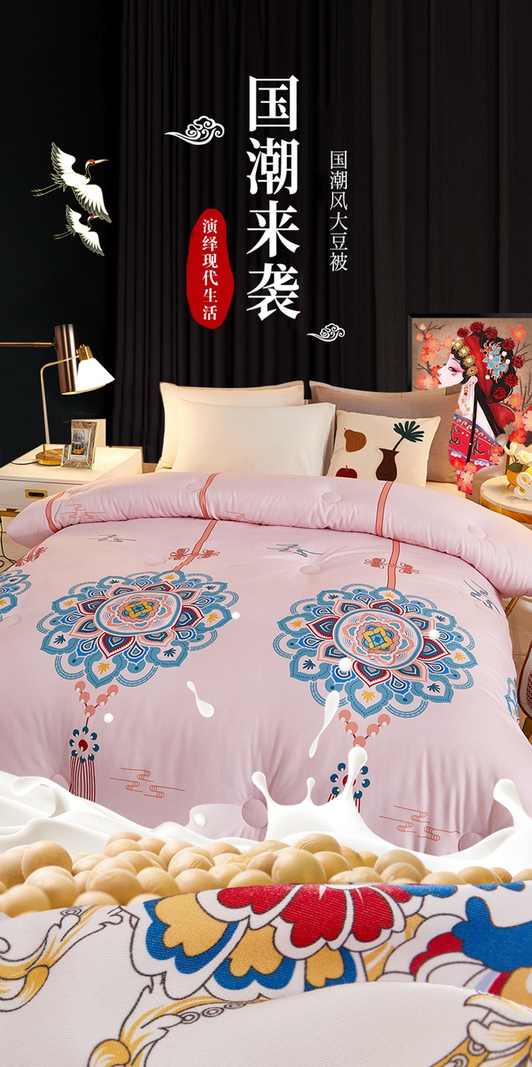 商品名称:澳洲羽 2024网红爆款国潮风大豆被子被芯春秋被冬被 祥云粉