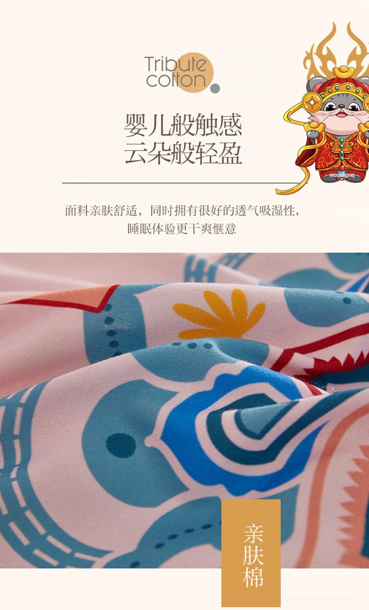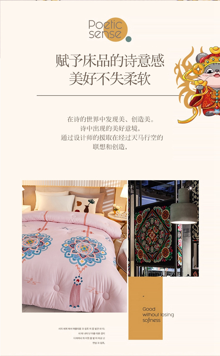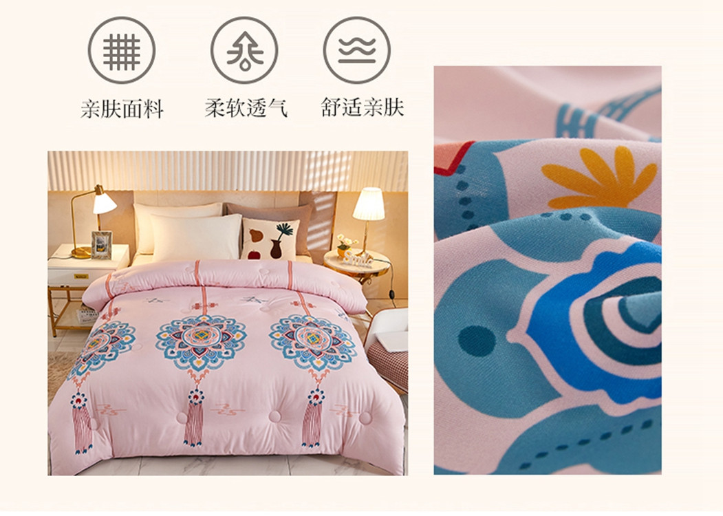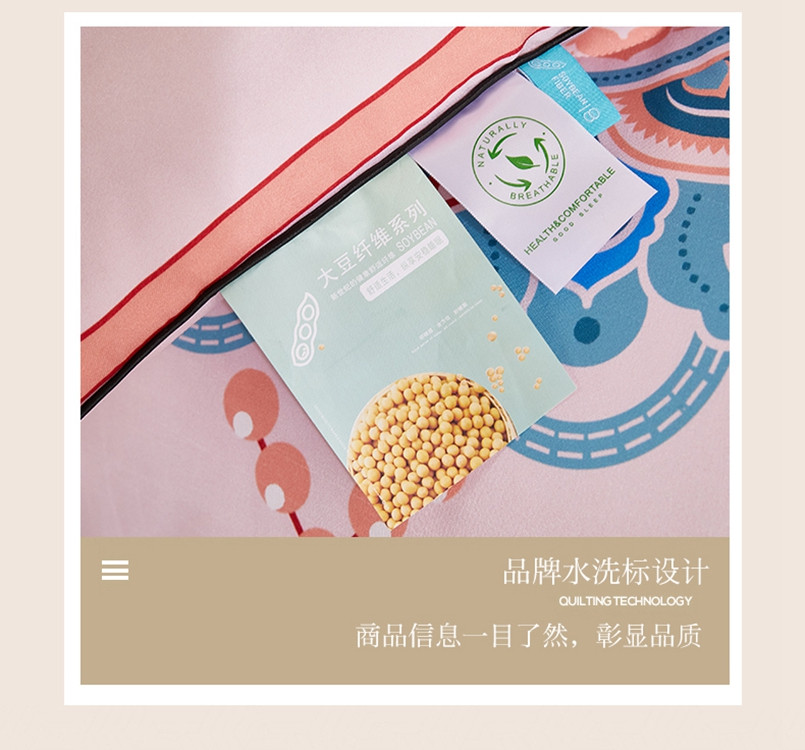 商品名称:澳洲羽 2024网红爆款国潮风大豆被子被芯春秋被冬被 祥云粉