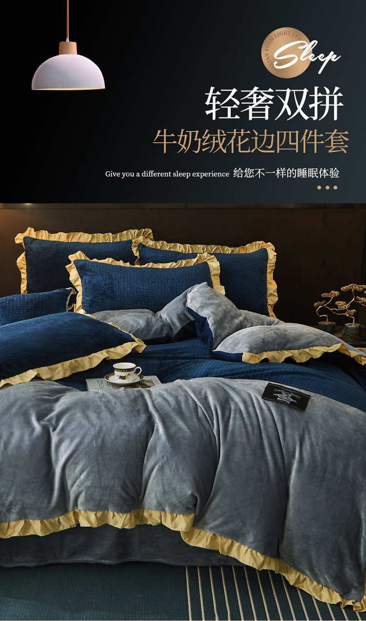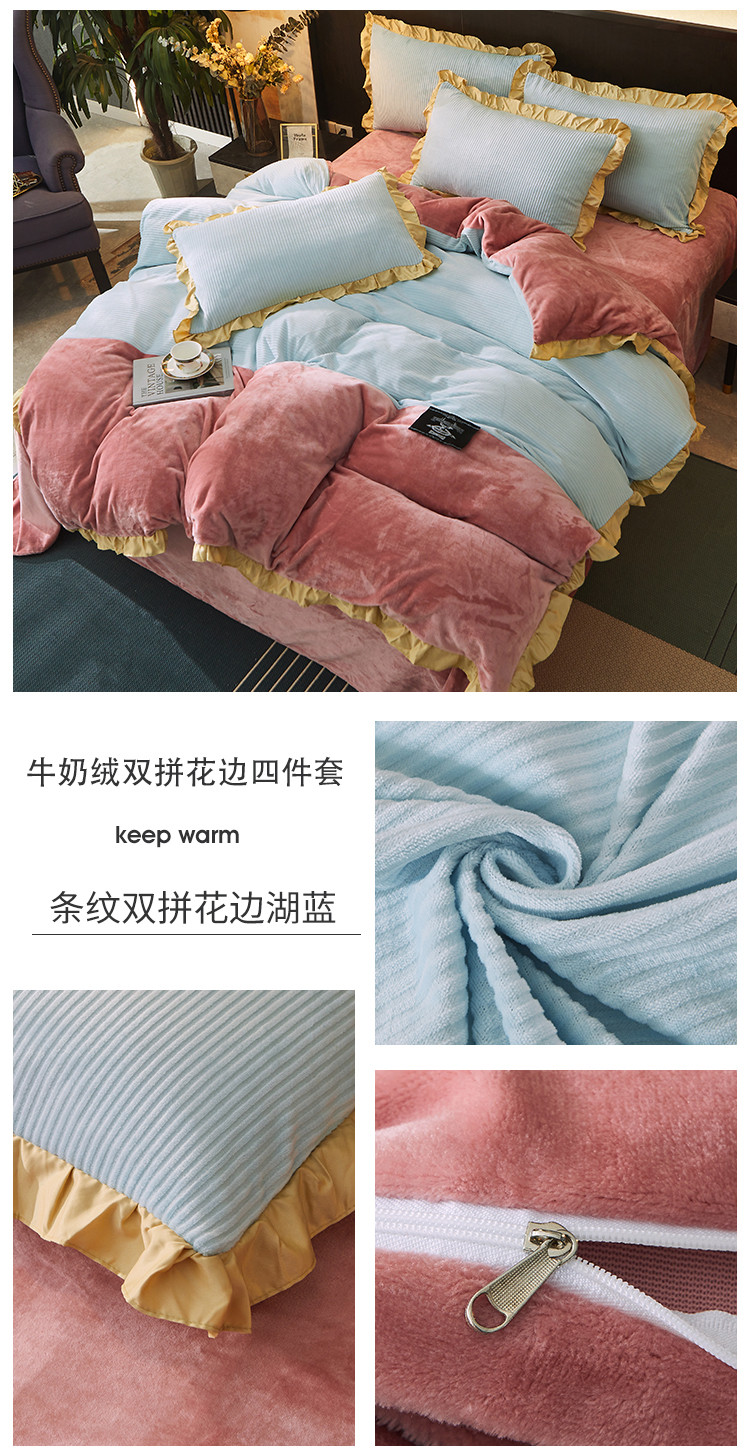 (总)芃成家纺 2021新款牛奶绒双拼花边四件套