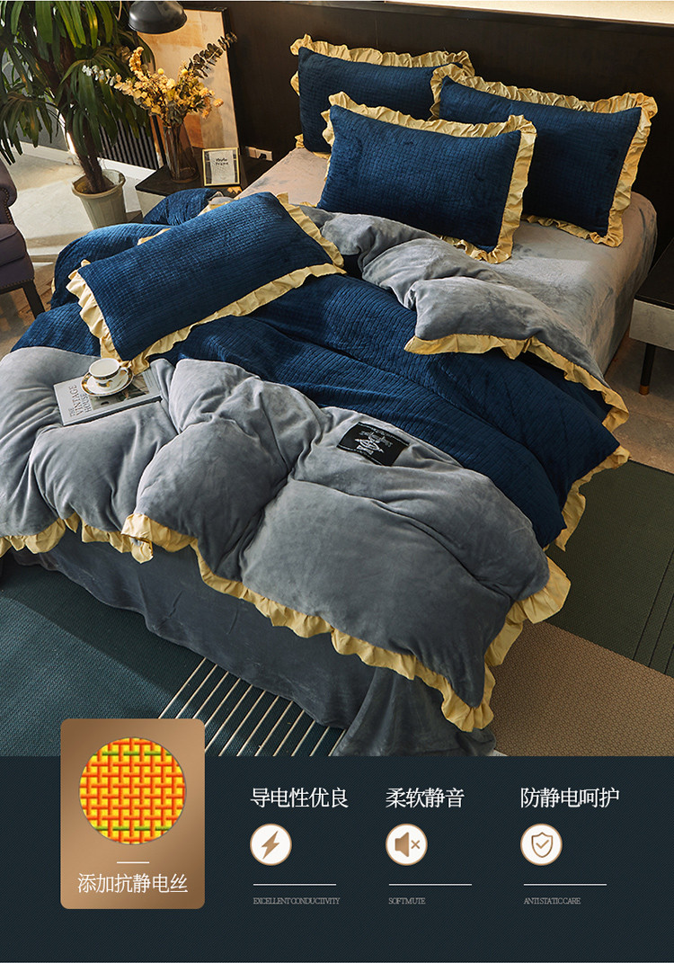 商品名称:(总)芃成家纺 2021新款牛奶绒双拼花边四件套