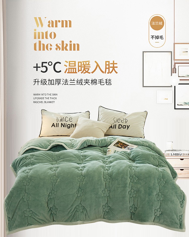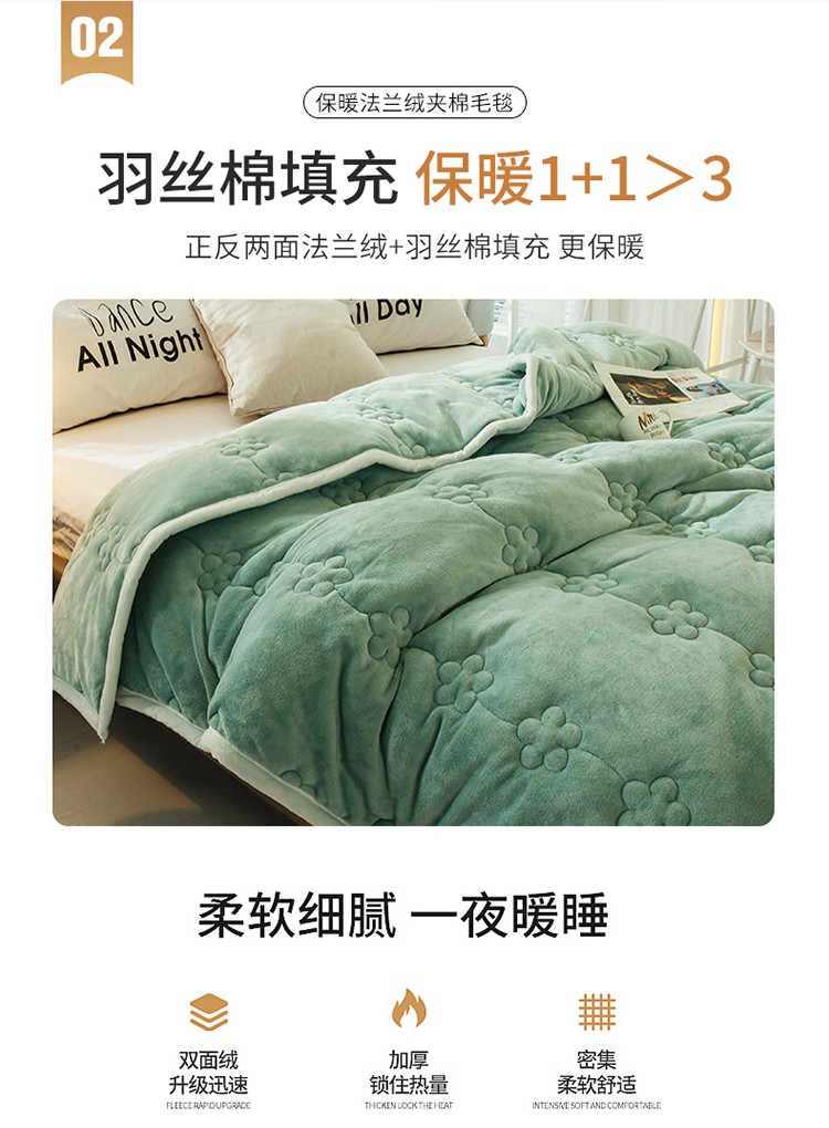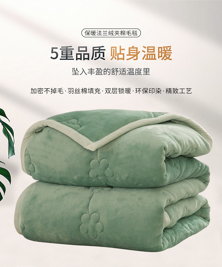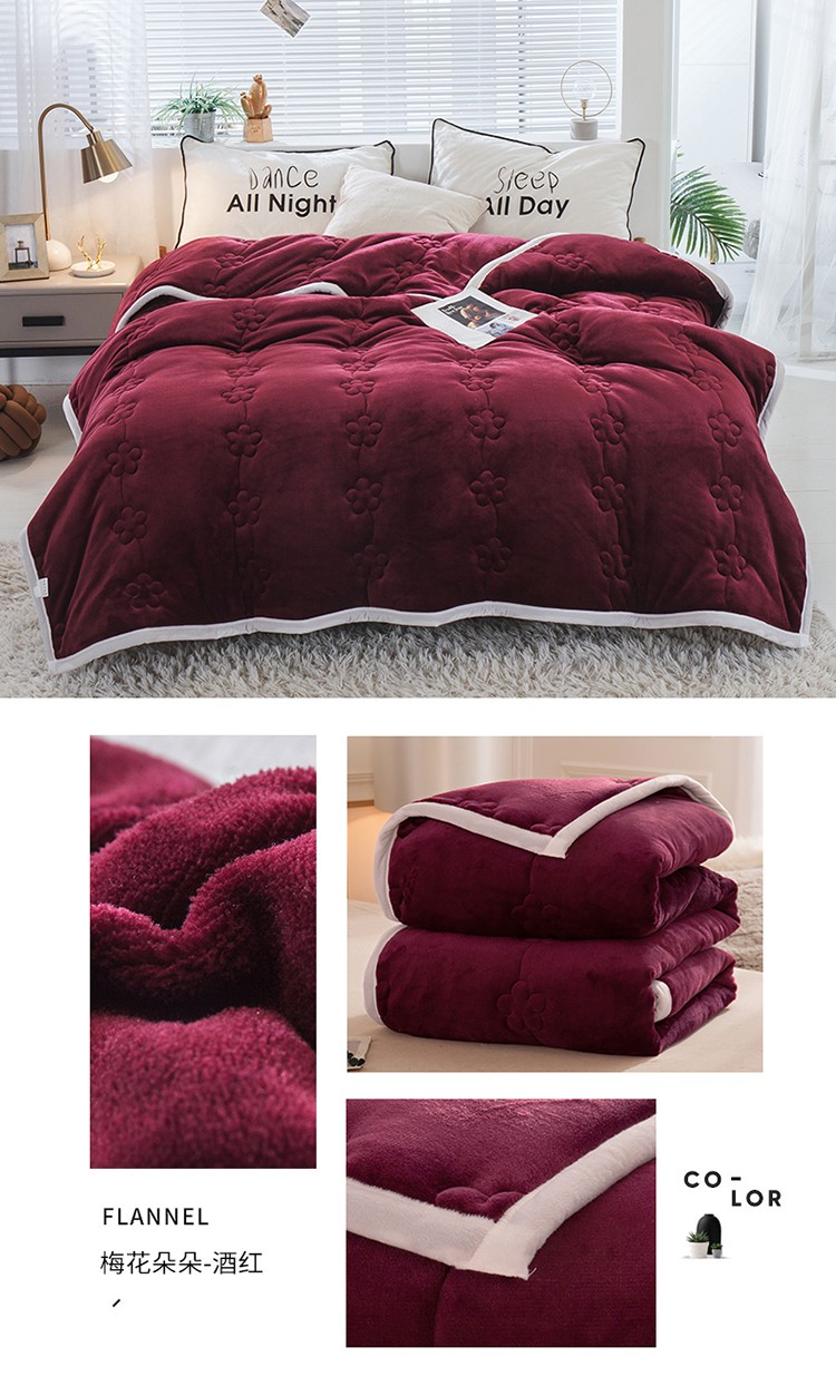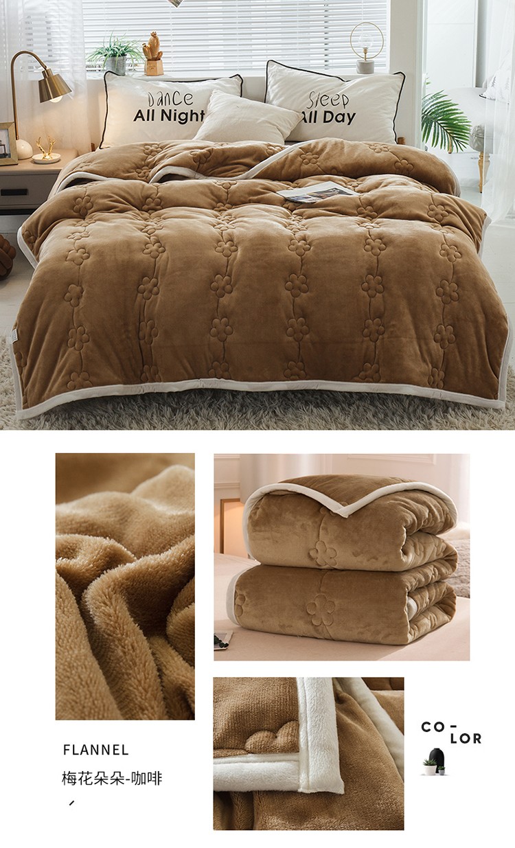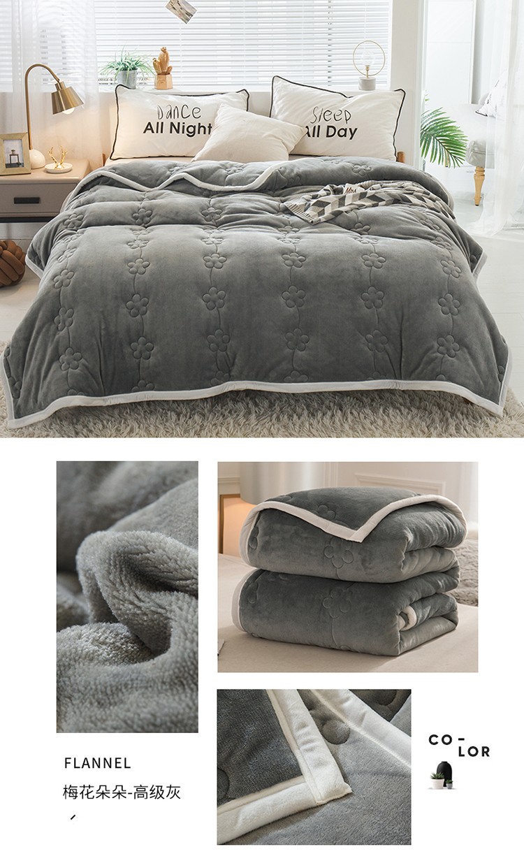 商品名称:(总)恩和家纺 2024新款法莱绒夹棉毛毯梅花朵朵-系列