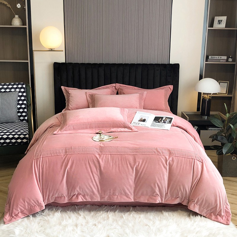 (总)时亿 2023新款加厚保暖獭兔绒四件套,抹茶绿,肉肉粉