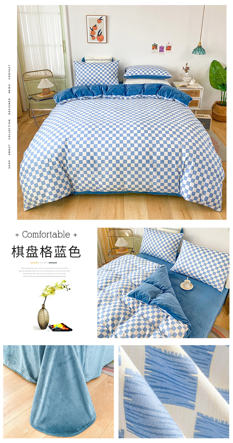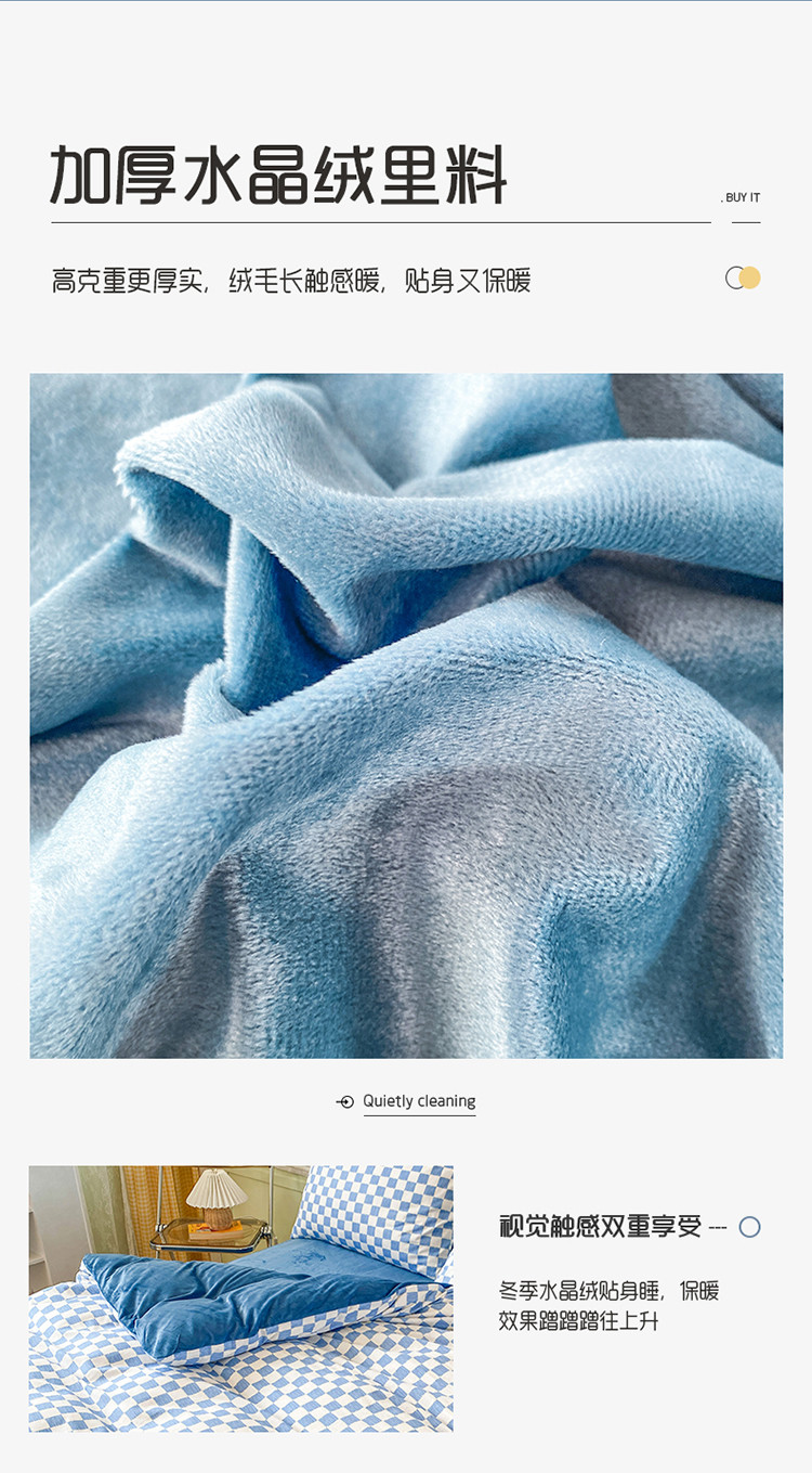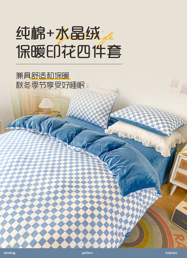 商品名称:珺柔家纺2021新款全棉印花水晶绒四件套棋盘格蓝色PPP