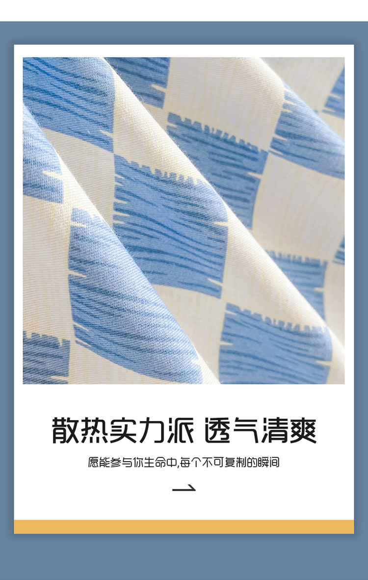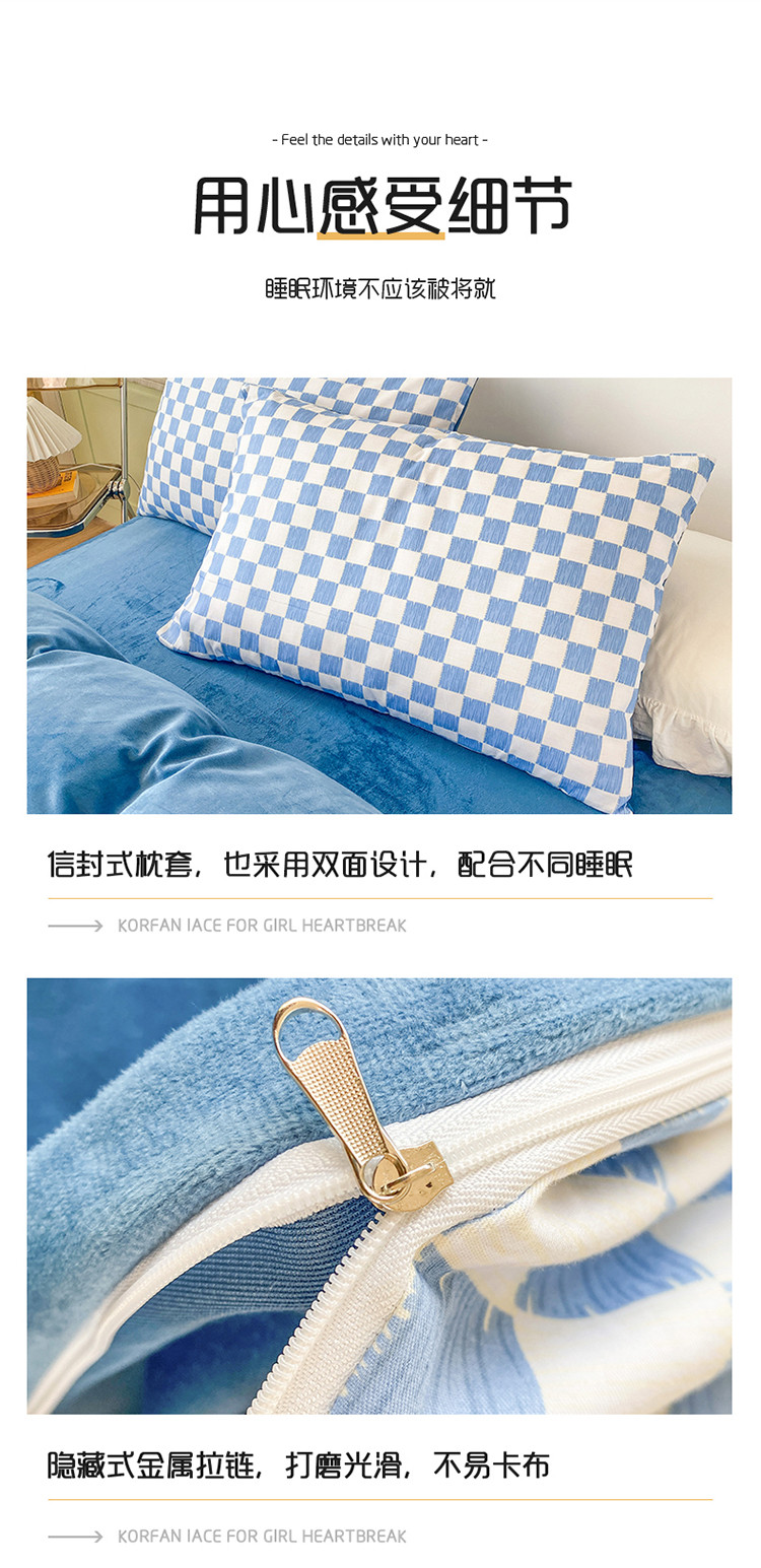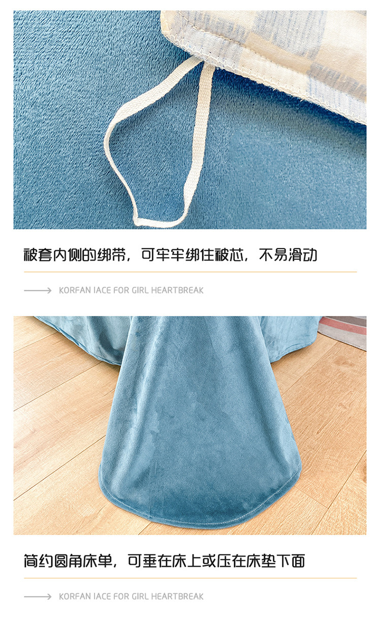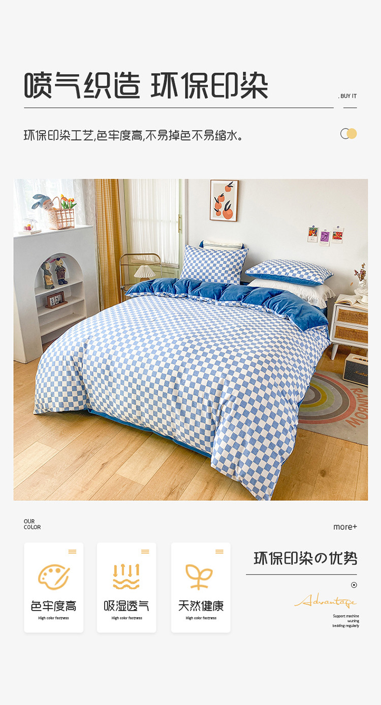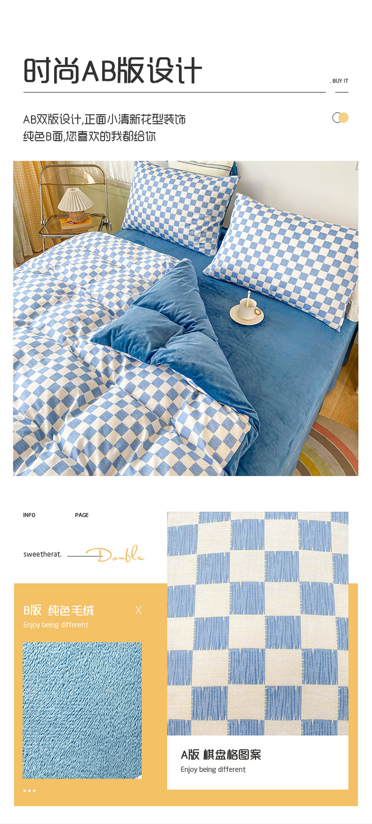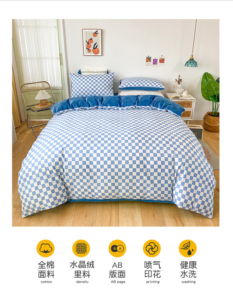 珺柔家纺2021新款全棉印花水晶绒四件套棋盘格蓝色PPP