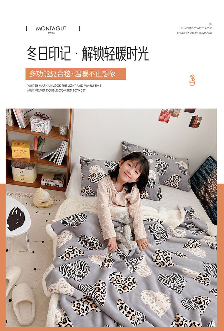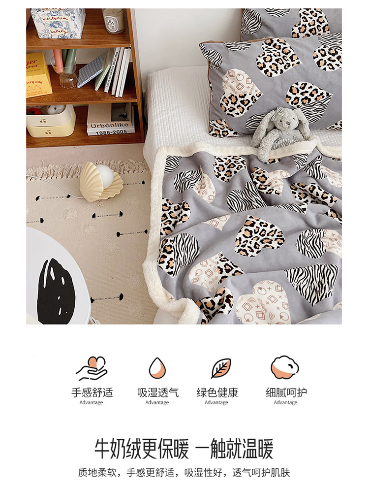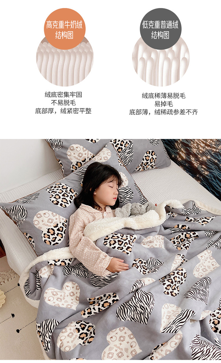 商品名称:雅居纺 2022新款A版牛奶绒B版羊羔绒复合毯 心心相印