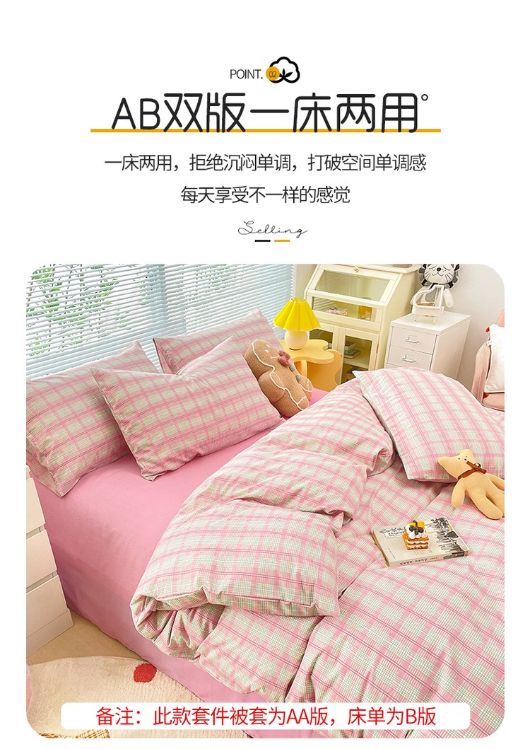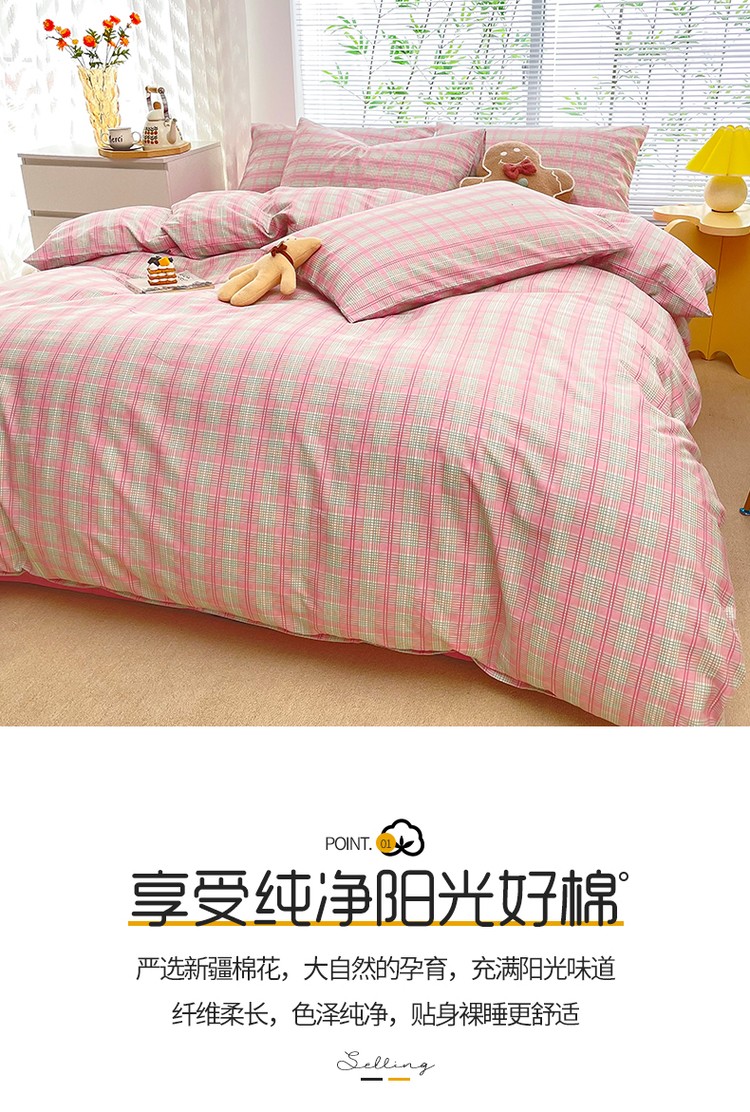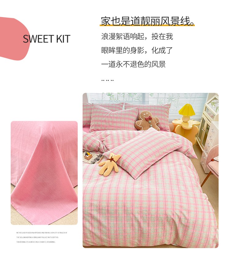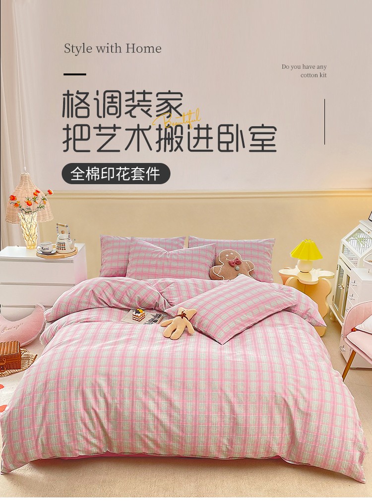 2021新ins风13372全棉印花四件套纯棉三件套蜜桃格