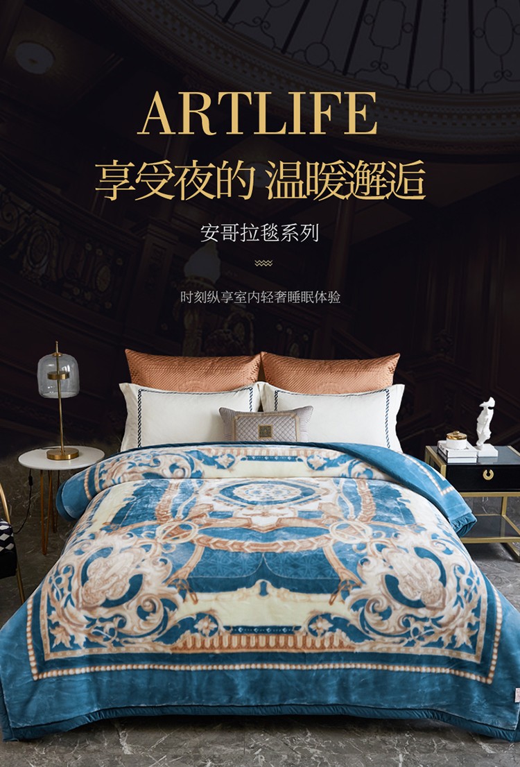 凯轩毛毛毯毯子 2024新款安哥拉云毛毯毯子 毛毛毯毯子 皇室世家 蓝