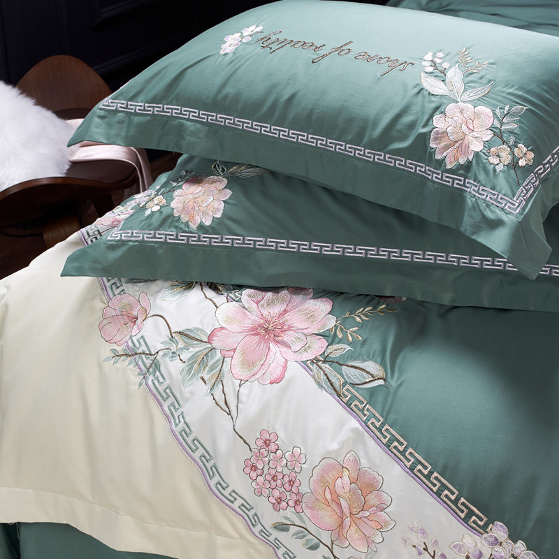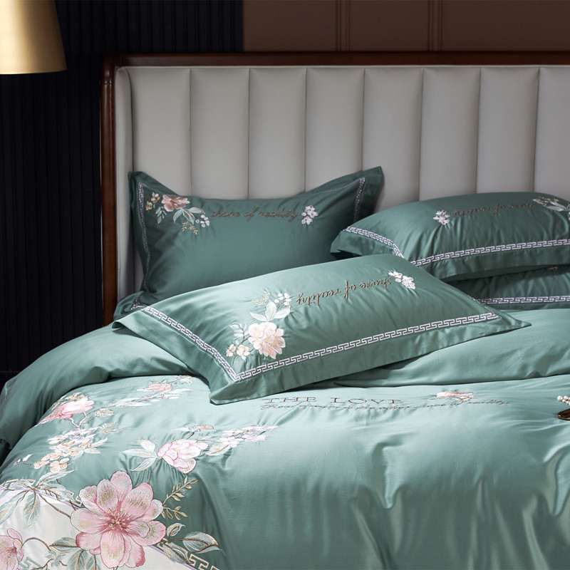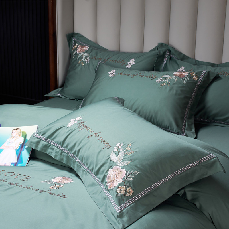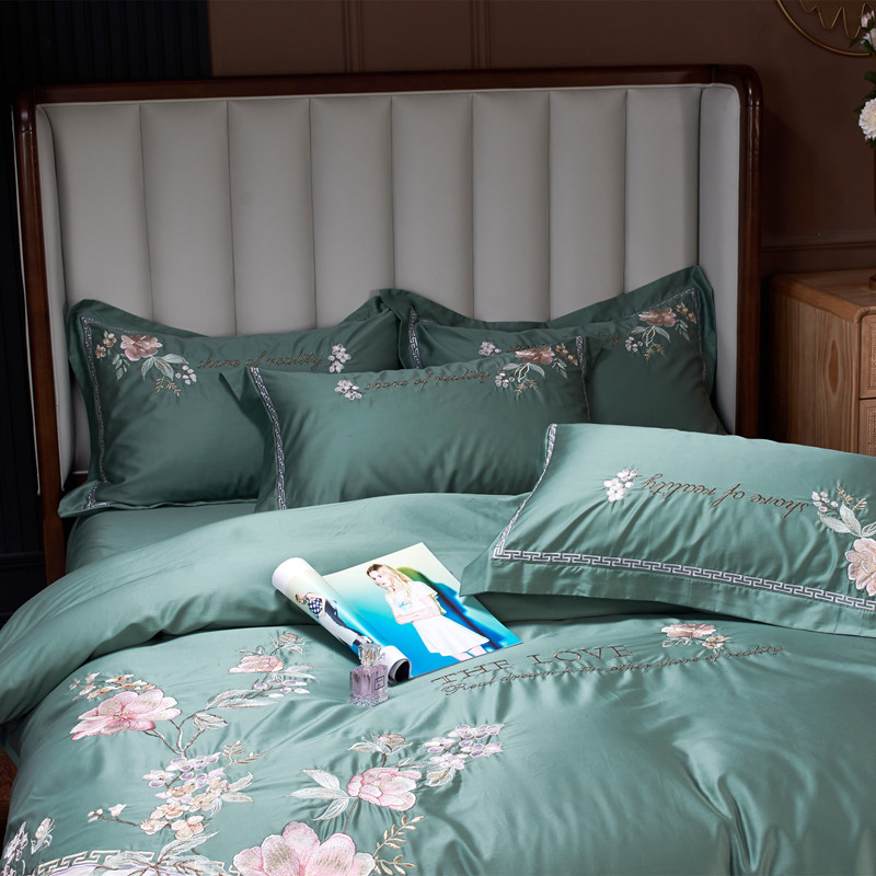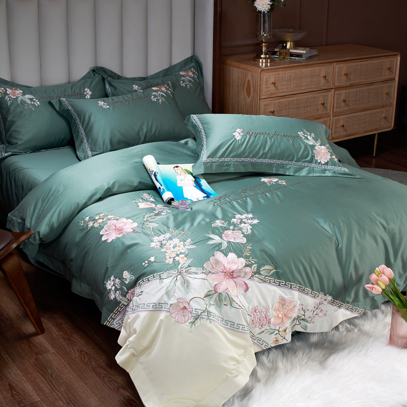 商品名称:星尚 2021新款秋冬100支长绒棉四件套-知雨花田 绿色