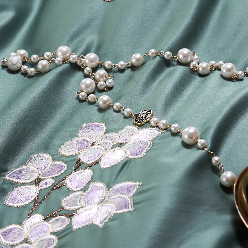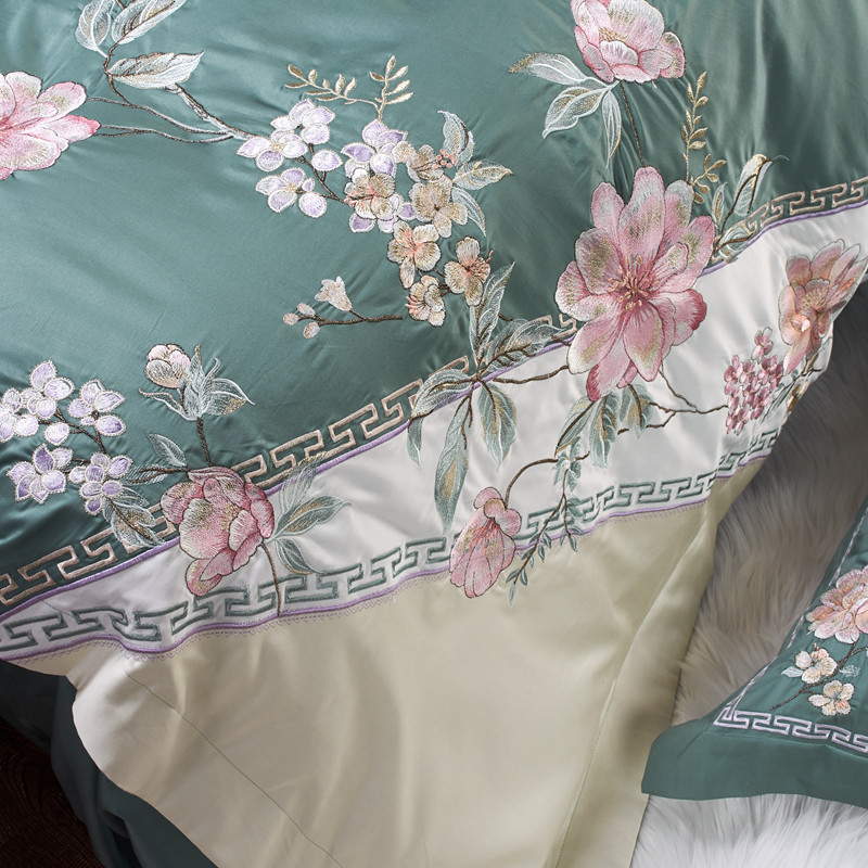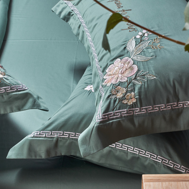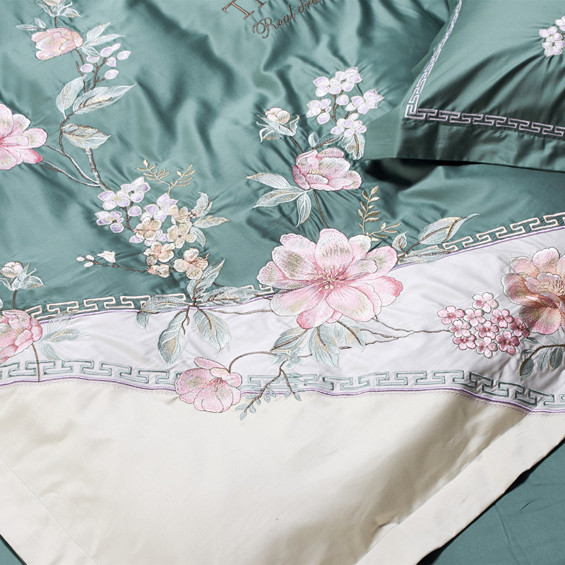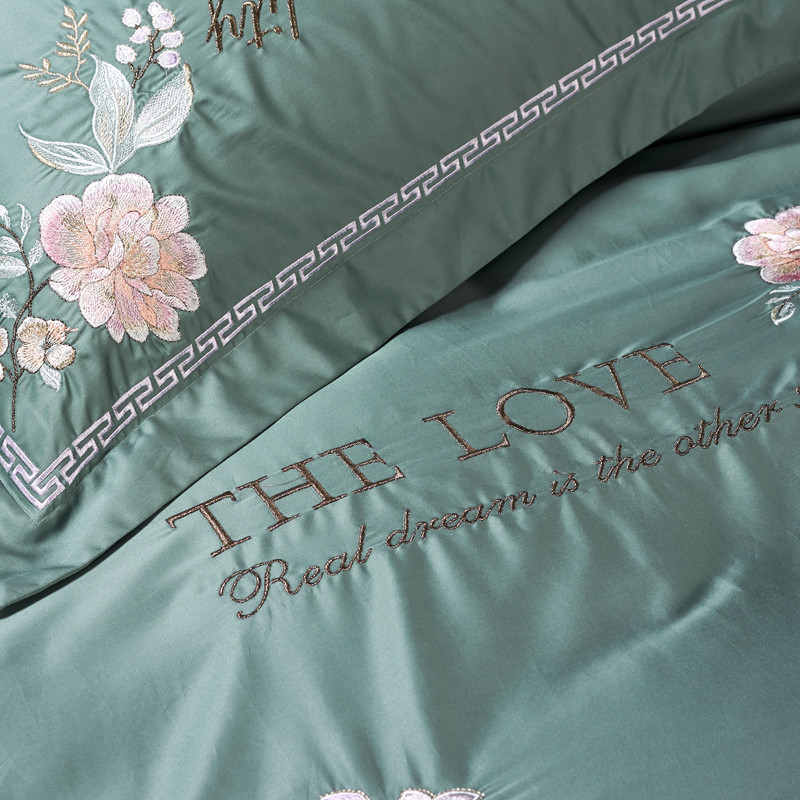 商品名称:星尚 2021新款秋冬100支长绒棉四件套-知雨花田 绿色