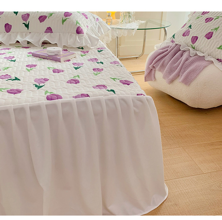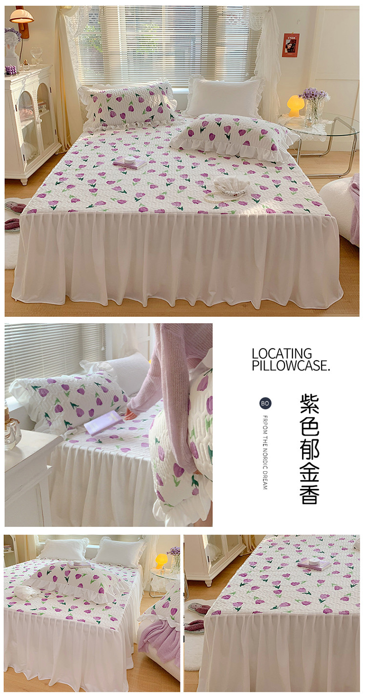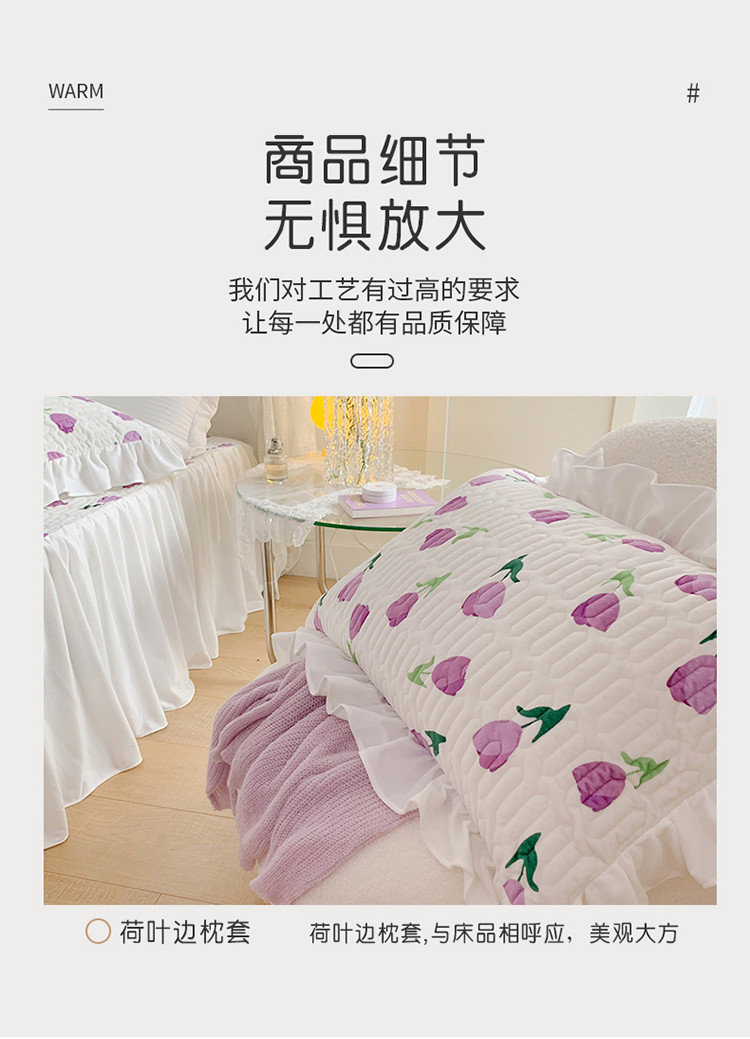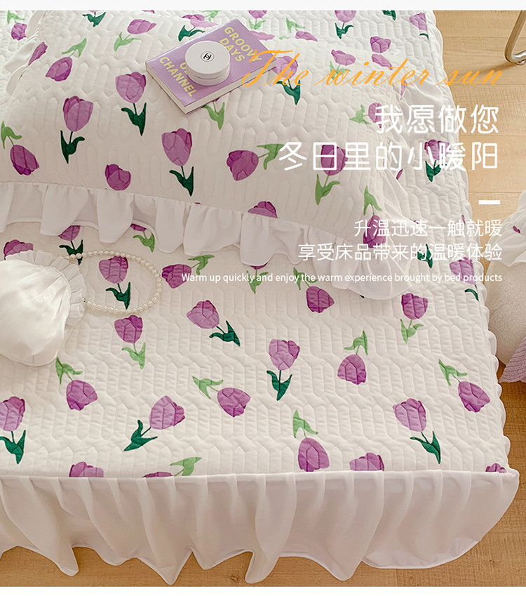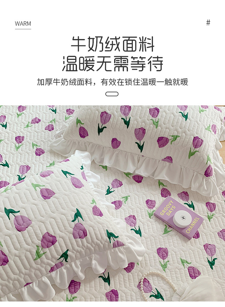 商品名称:眠屿ins仙仙的牛奶般丝滑韩版牛奶绒床裙床盖三件套紫色郁金香