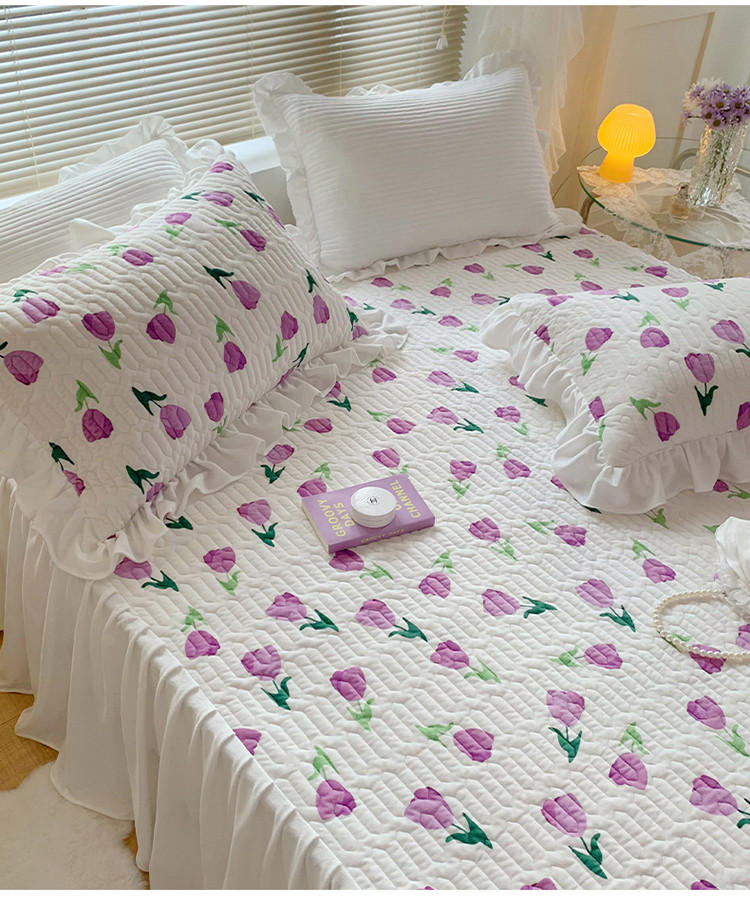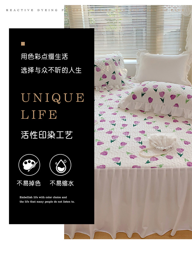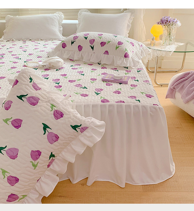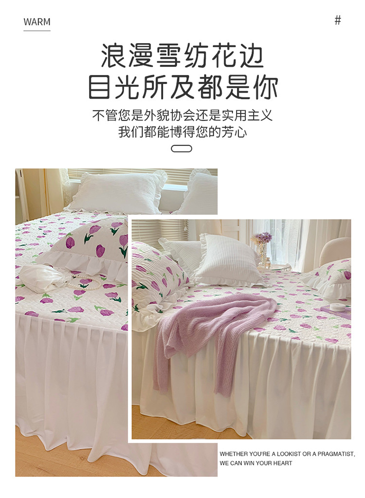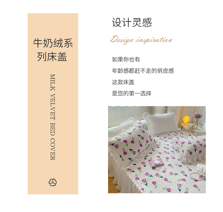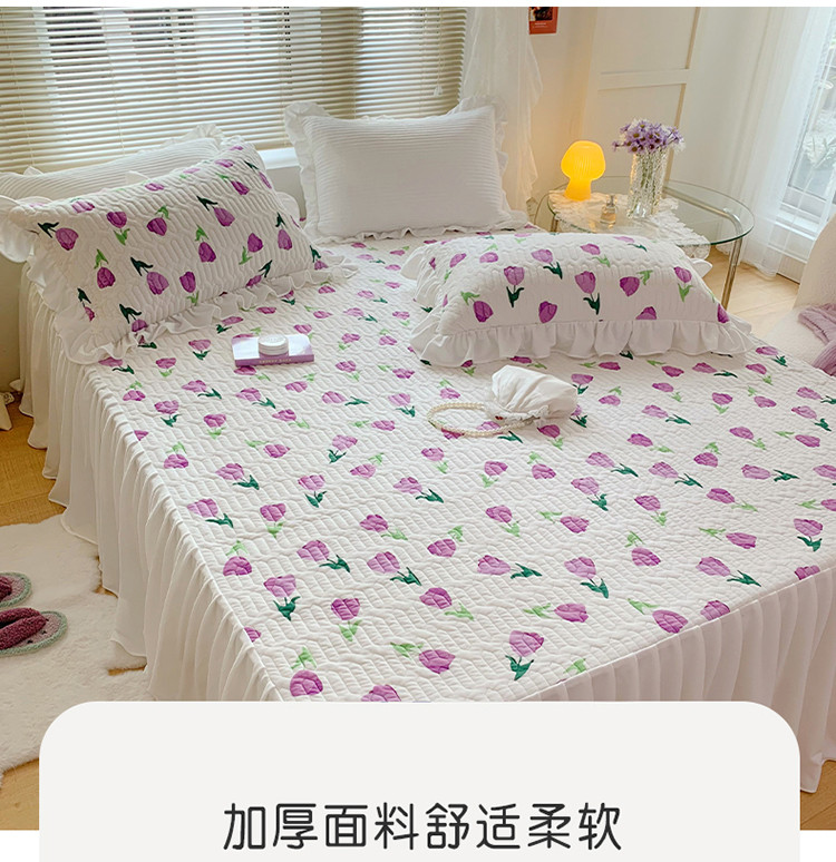 商品名称:眠屿ins仙仙的牛奶般丝滑韩版牛奶绒床裙床盖三件套紫色郁金香