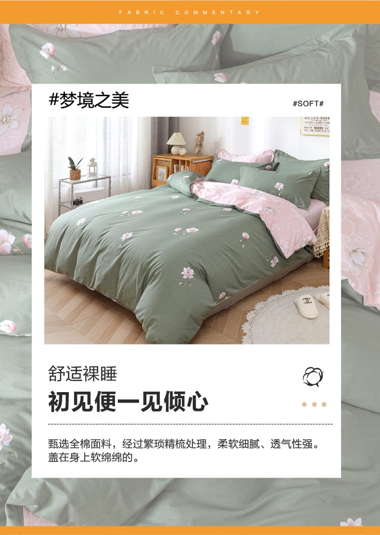 (总)星期三 2021年7月新款铂金全棉13372四件套(加老板微信有会员价),诺微花开,仙菊,小轮船,小糖豆,月光恋曲-绿