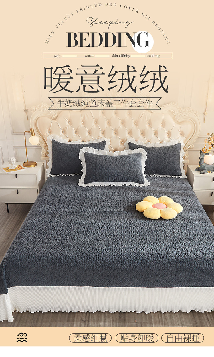宜凡 2021新款牛奶绒小清新三件套 深灰
