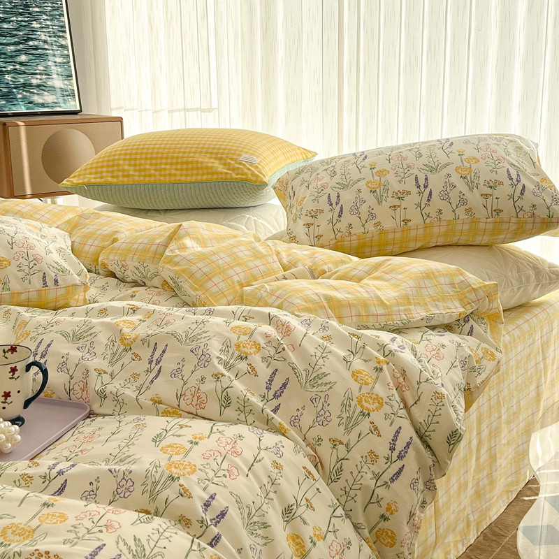 (总)昔可 2023新款全棉ins格子混搭系列四件套,ins简约绿格,粉蓝格,开心果格,学院格纹,粉绿格,海盐兰格,黄绿格,夏日蓝条,芝士黄条,紫芋泥芝士格