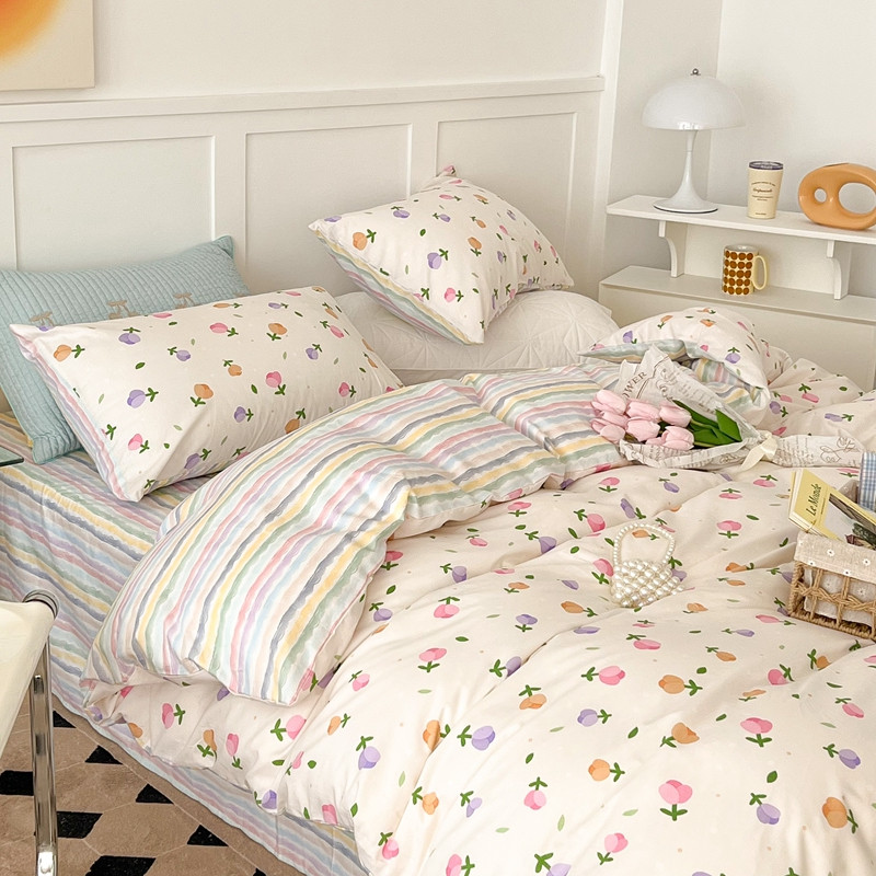 (总)昔可 2023新款学生季卡通普通款四件套,彩色气球熊,彩条恐龙,憨憨熊,花蜜小兔,蘑菇兔,圈圈草莓,蔬菜小兔,郁金香小萌狗