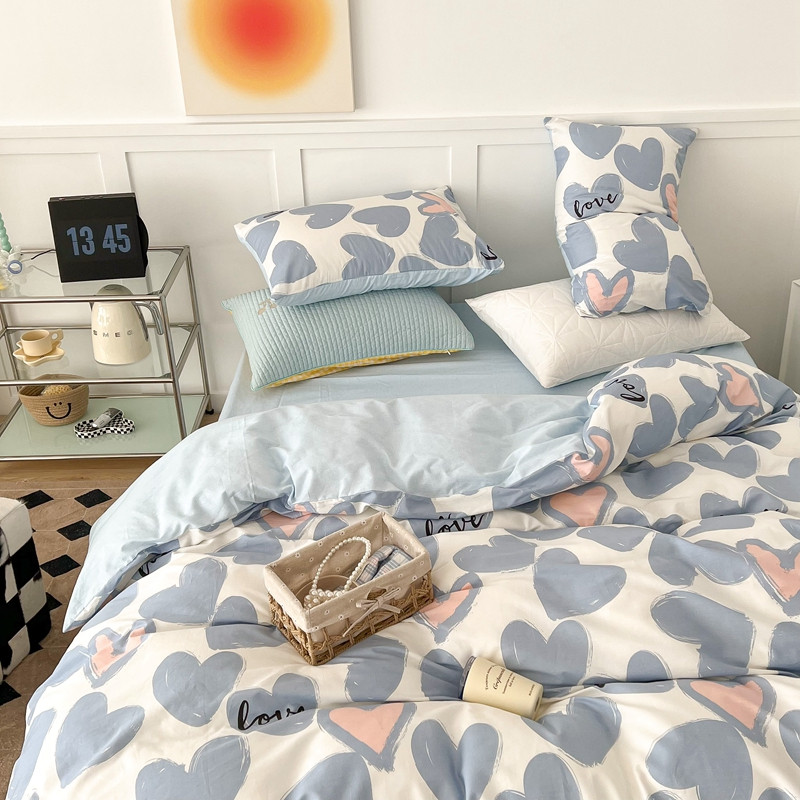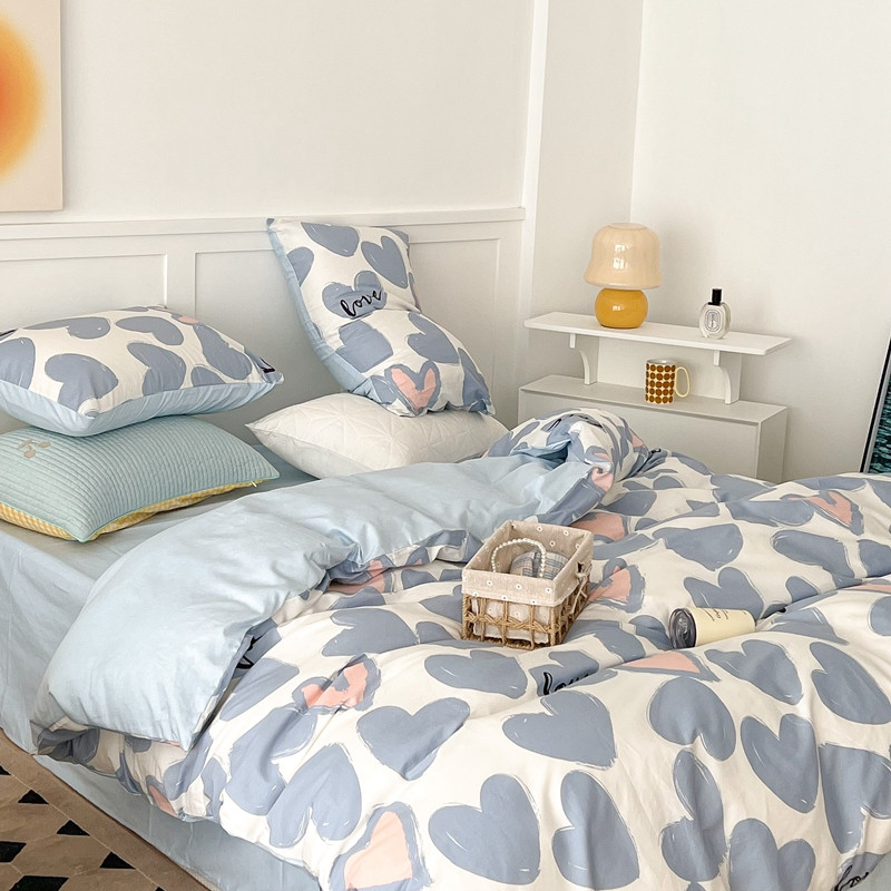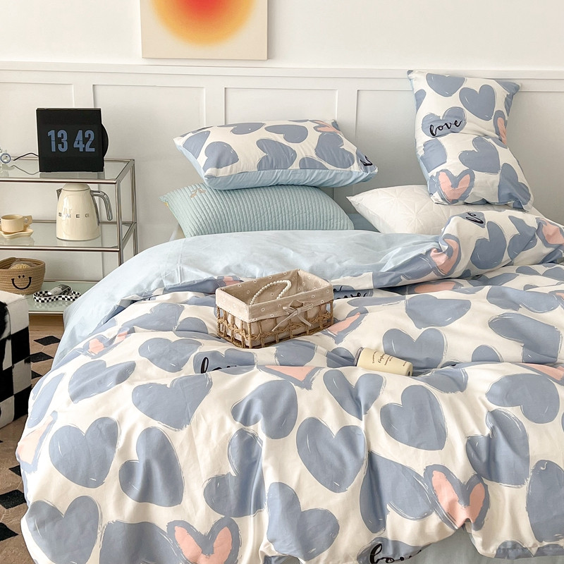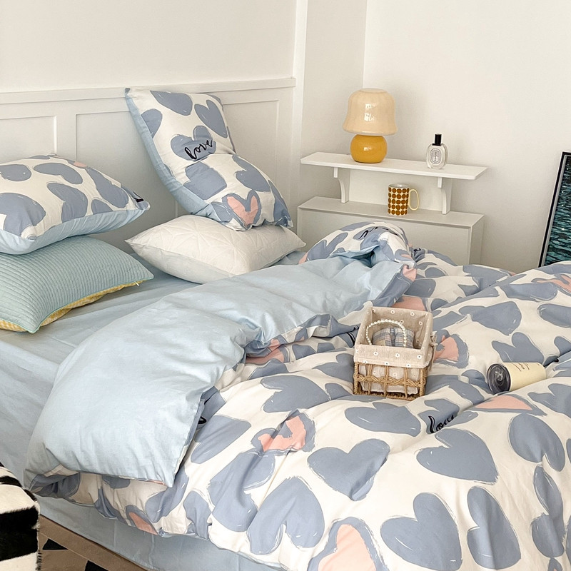 昔可家纺 2022新款13372全棉普通款爱心系列四件套 撞色爱心蓝