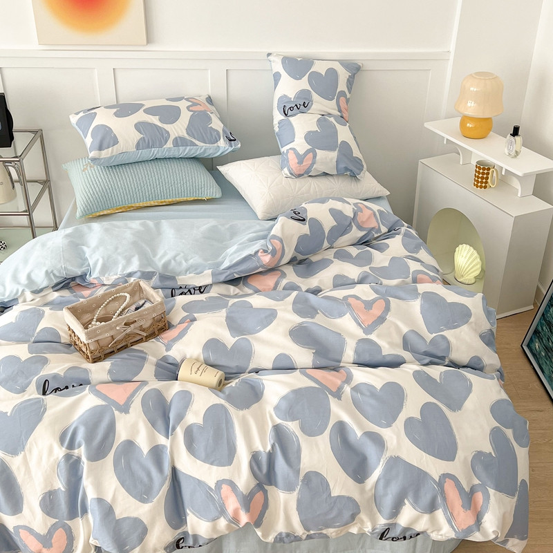 商品名称:昔可家纺 2022新款13372全棉普通款爱心系列四件套 撞色爱心蓝