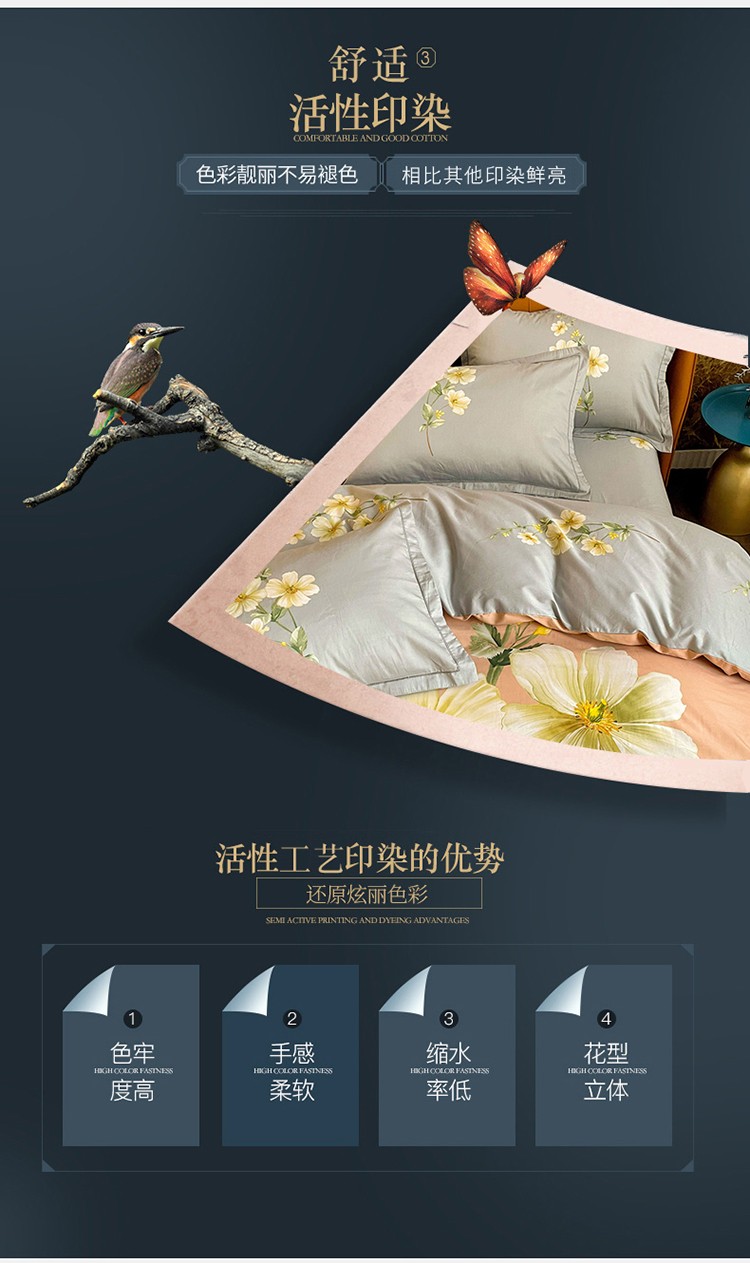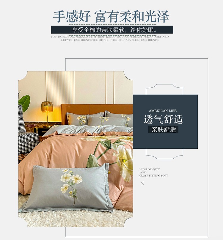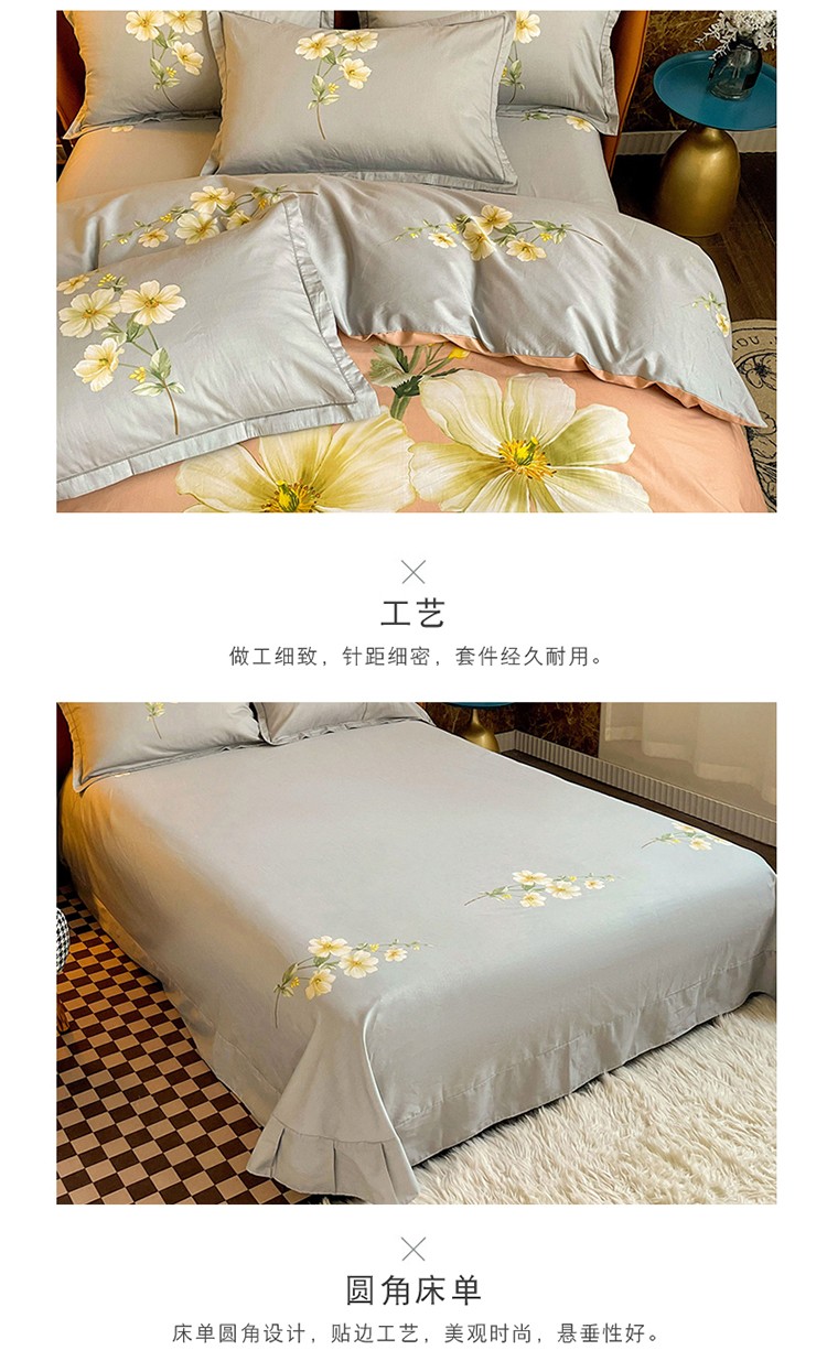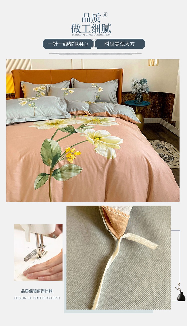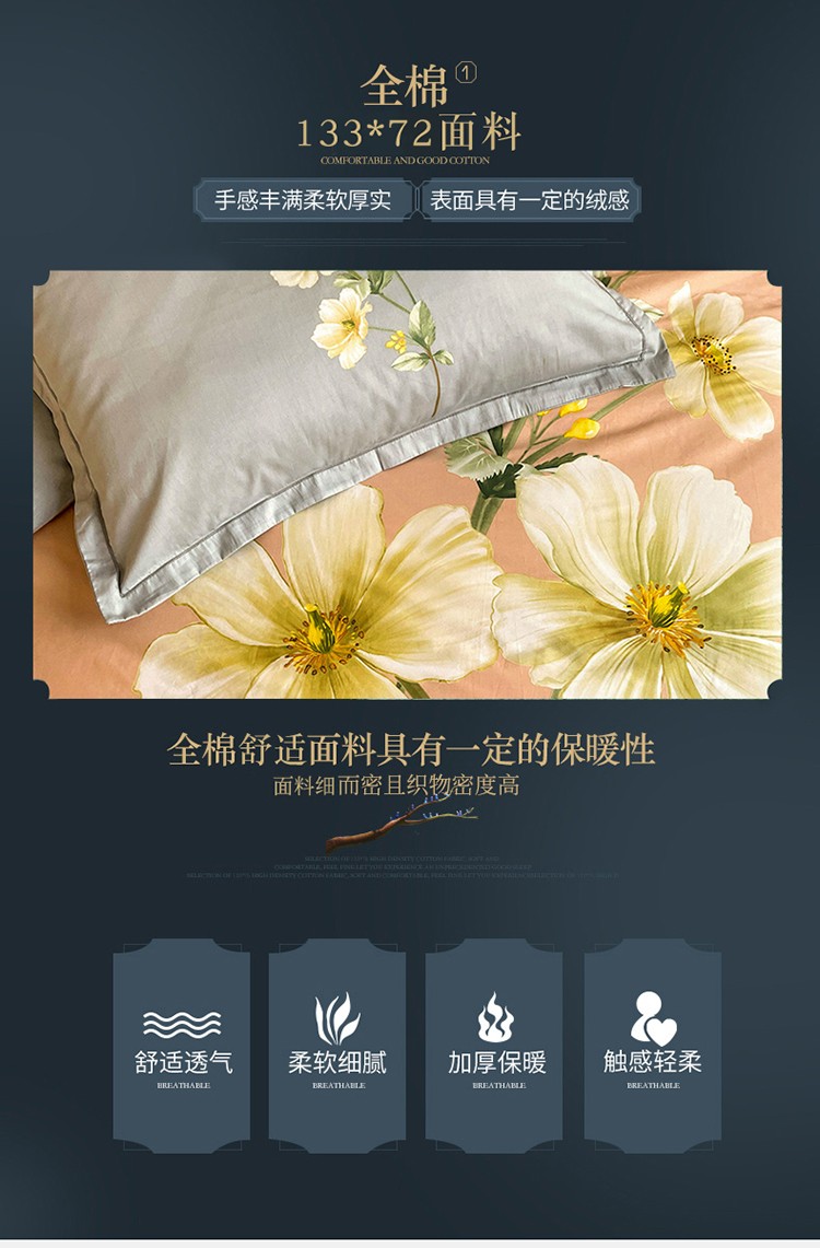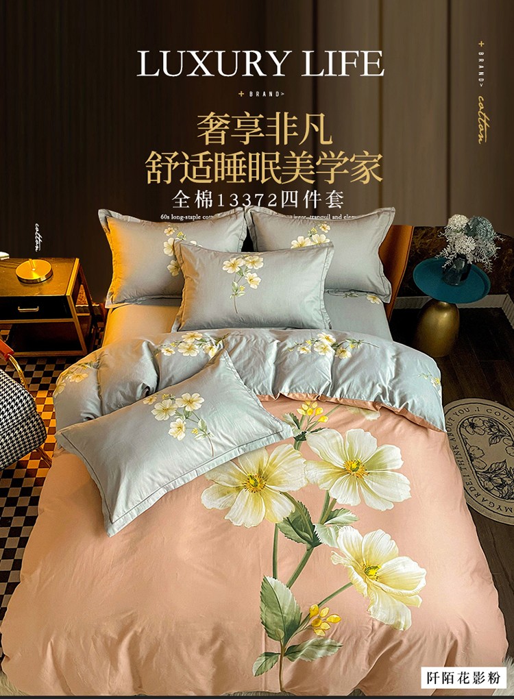 商品名称:金爱家 2023新款大版13372全棉花卉系列四件套 阡陌花影粉