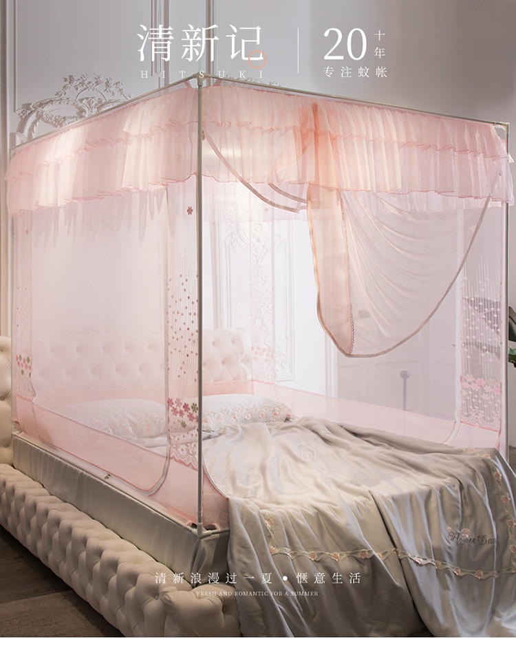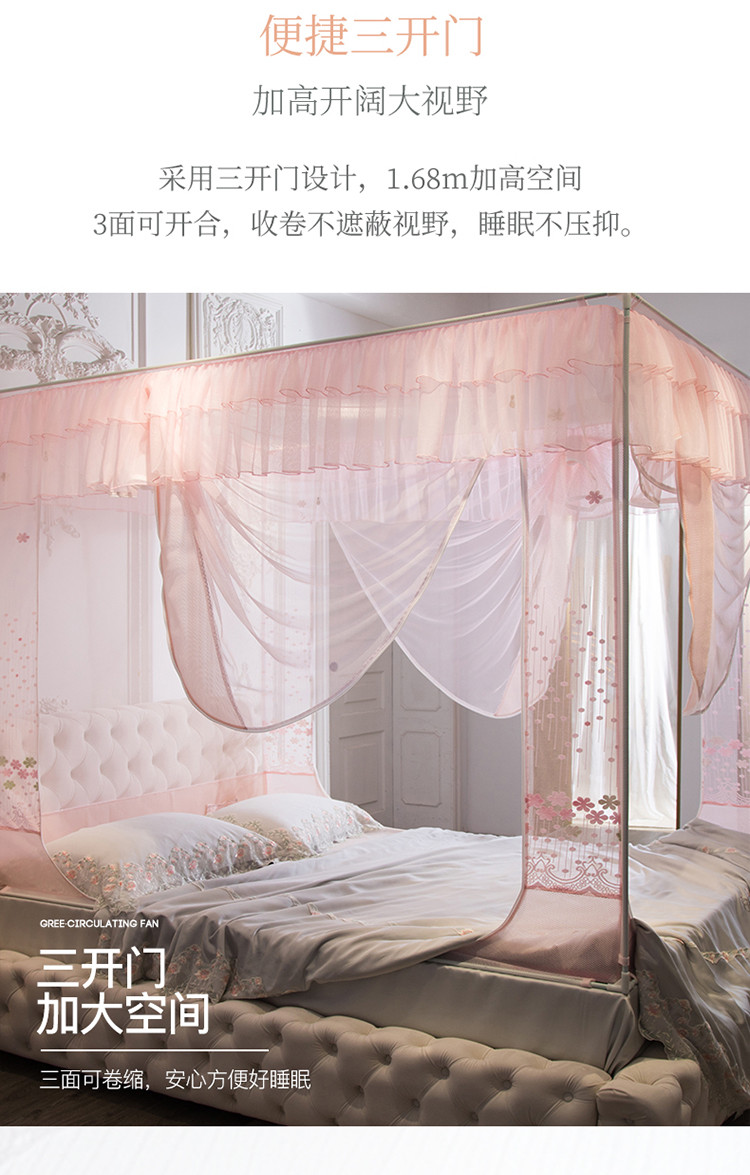 (总)飞轮海蚊帐 新款双层方顶宫廷落地蚊帐-LX91,双层嫩粉,双层香槟,双拼蓝绿,双拼清水蓝