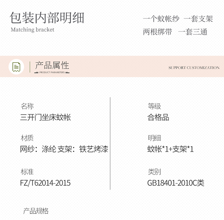 商品名称:(总)飞轮海蚊帐 2022新款三开门坐床式蚊帐-z57
