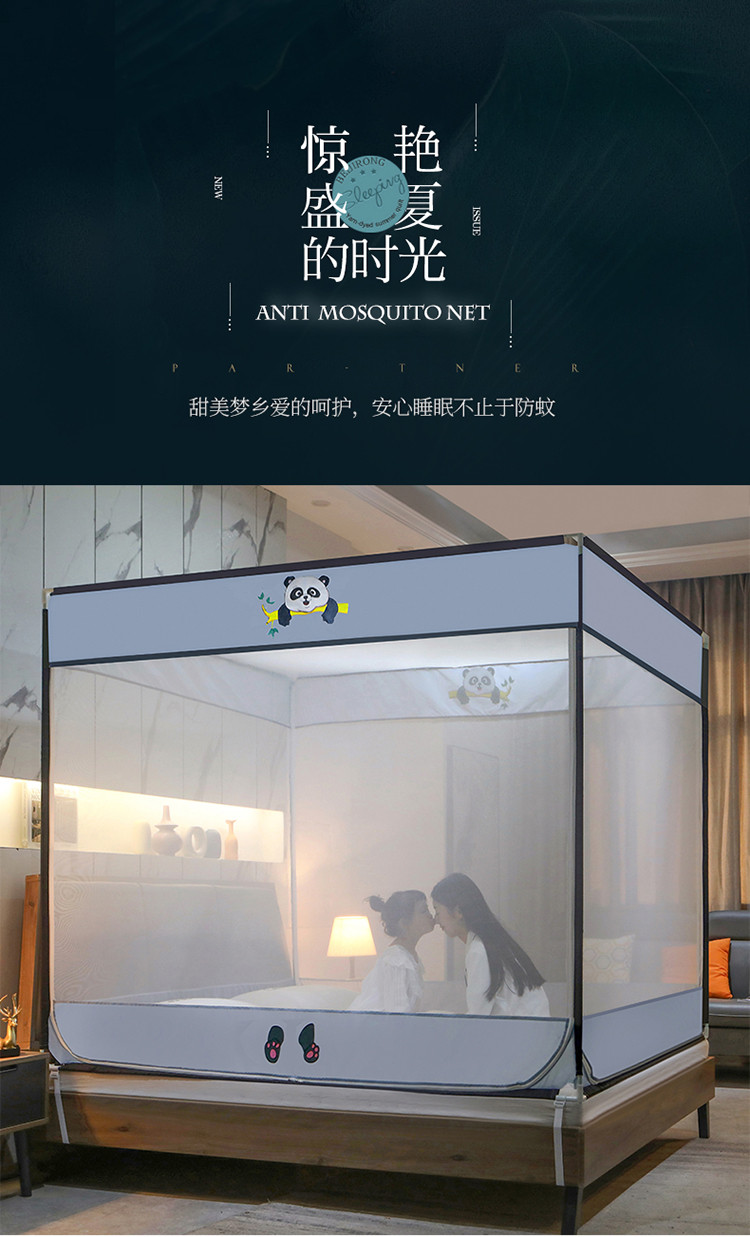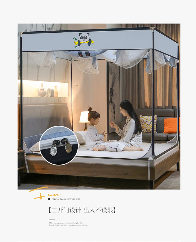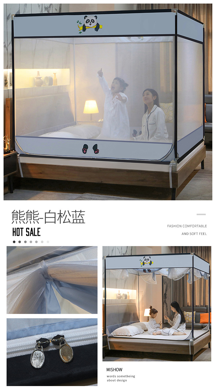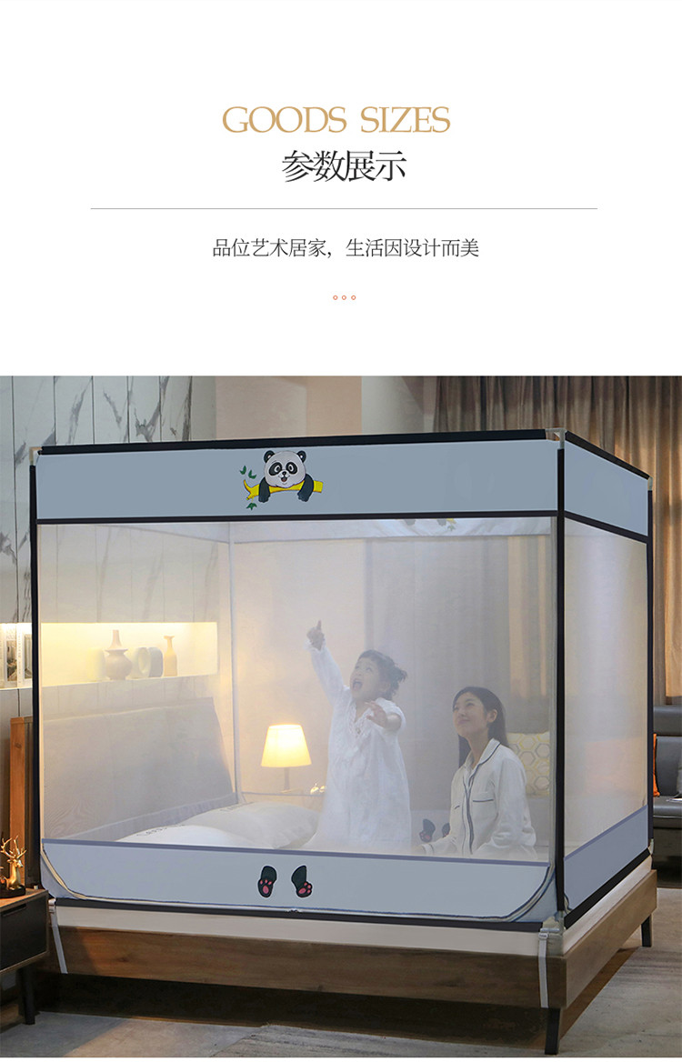 (总)飞轮海蚊帐 2025新款三开门方顶花边防摔遮光蚊帐-Z39,你好蛙,不许动,快乐家族,生活有趣,熊猫宝