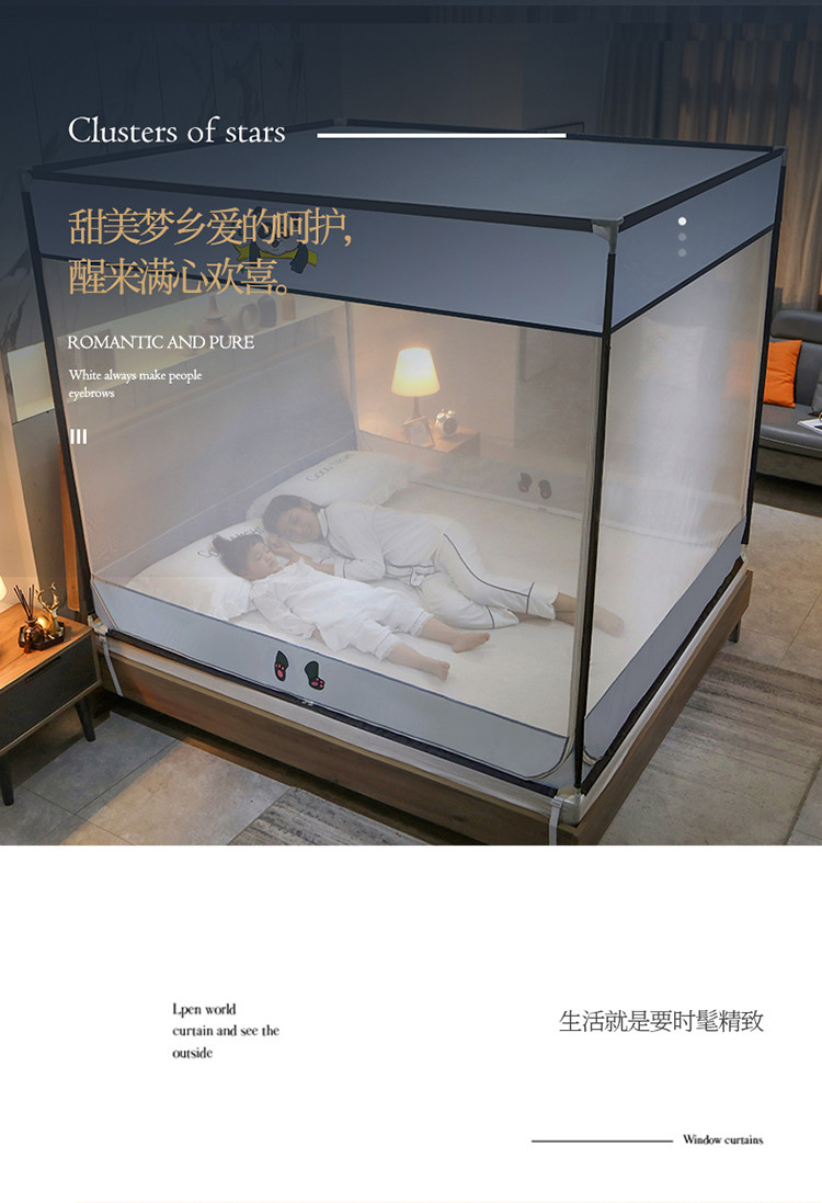 (总)飞轮海蚊帐 2023新款三开门落地遮光蚊帐-L-93,高级灰,芥末绿,奶油黄,香槟
