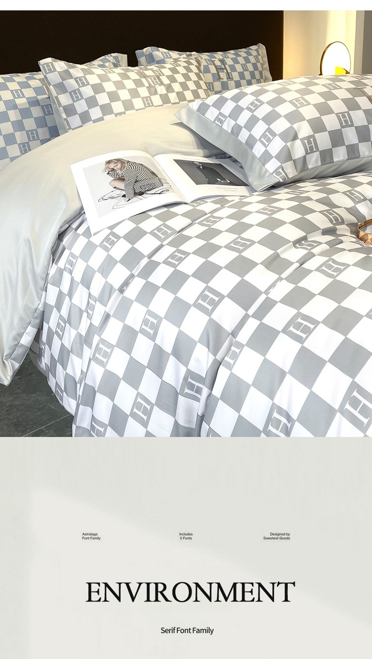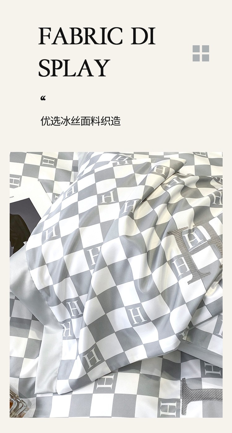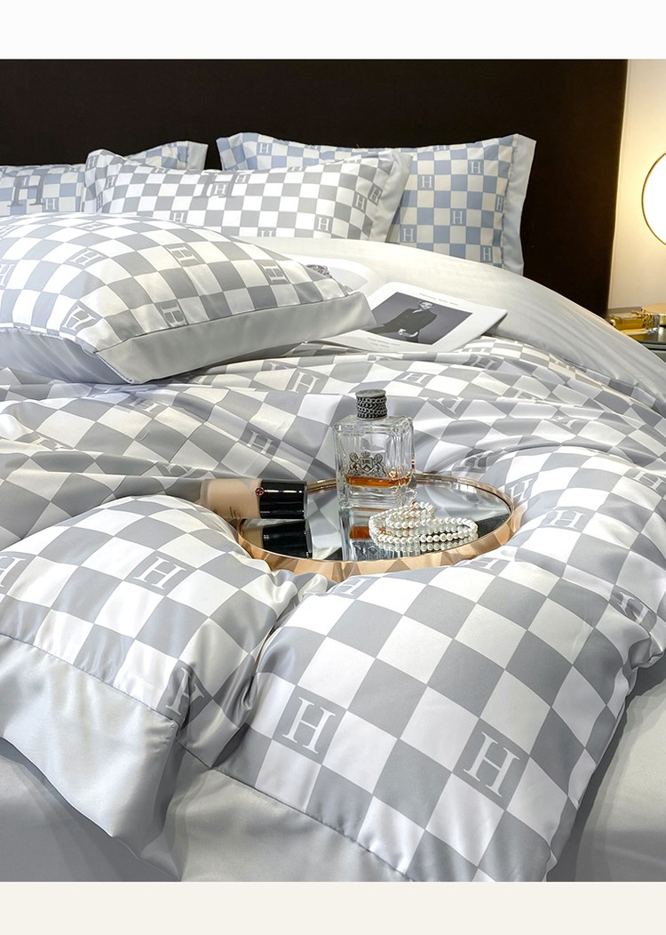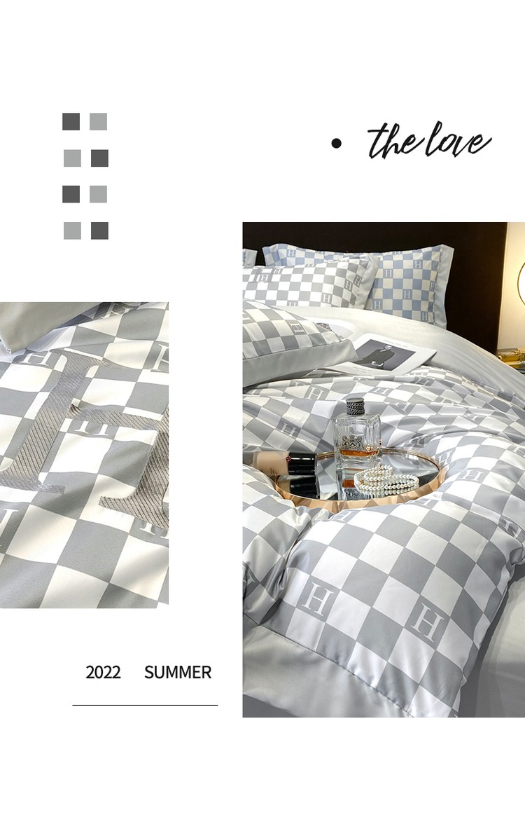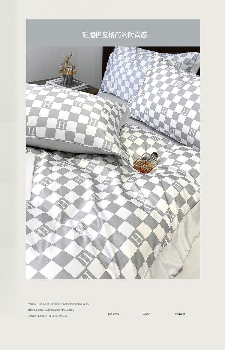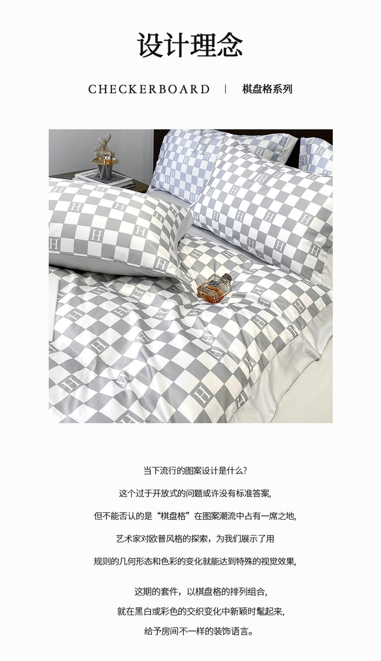 商品名称:优悦生活馆 2022新款棋盘格冰丝四件套 棋盘-灰