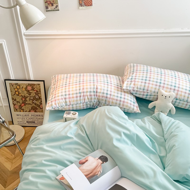 当前位置: 91家纺网 > 商品网购 > 床品套件 > 四件套 > 磨毛活性四件套 > 优宜家 新款磨毛纯色ins款双拼混搭四件套水蓝+冰淇淋格