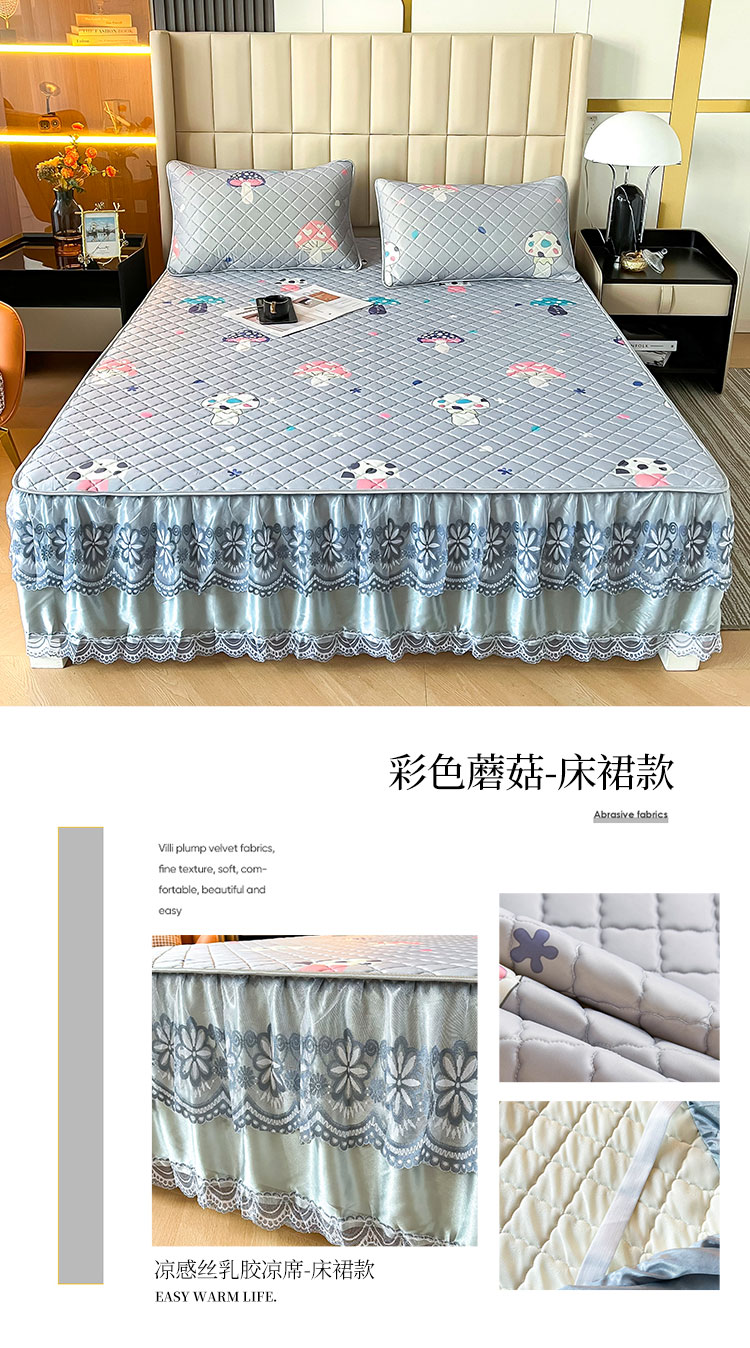 当前位置: 91家纺网 > 商品网购 > 床上用品 > 床裙 > 锦罗绣 2024新款水洗乳胶凉席床裙凉席夏被四件套 彩色蘑菇