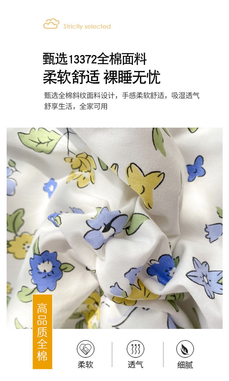 当前位置: 91家纺网 > 商品网购 > 床品套件 > 四件套 > 夏被四件套 > 眠博士2022新款全棉13372时尚印花夏被四件套 恬静花语