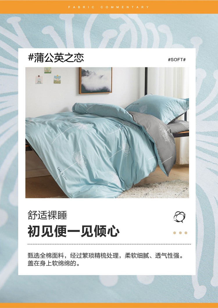 商品名称:星期三 2022年6月铂金全棉13372学生宿舍上下铺三件套(加老板微信有会员价) 蒲公英之恋