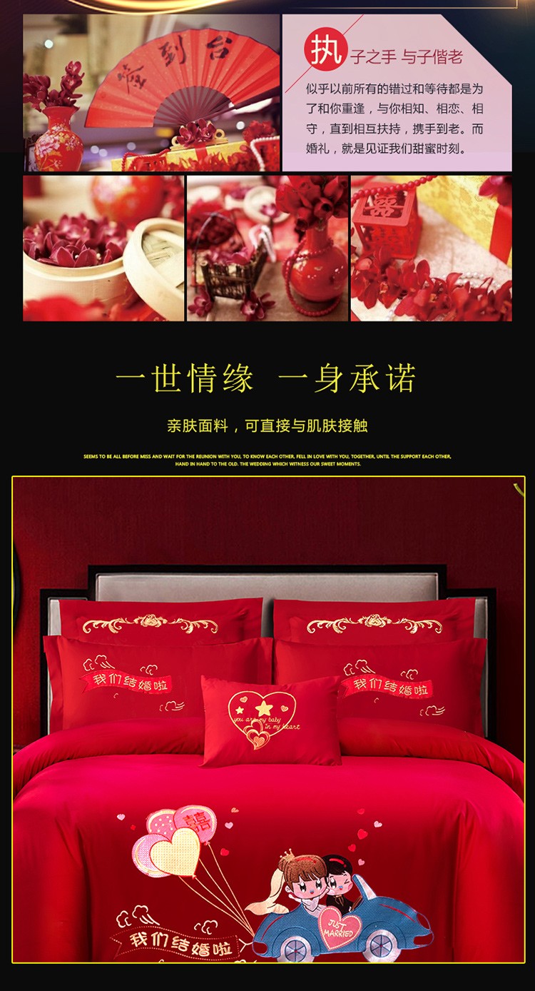 当前位置: 91家纺网 > 商品网购 > 床品套件 > 多件套 > 多件套 > 婚庆四件套大红色刺绣结婚六七件套多件套喜庆婚礼婚被床上用品 浪漫旅行