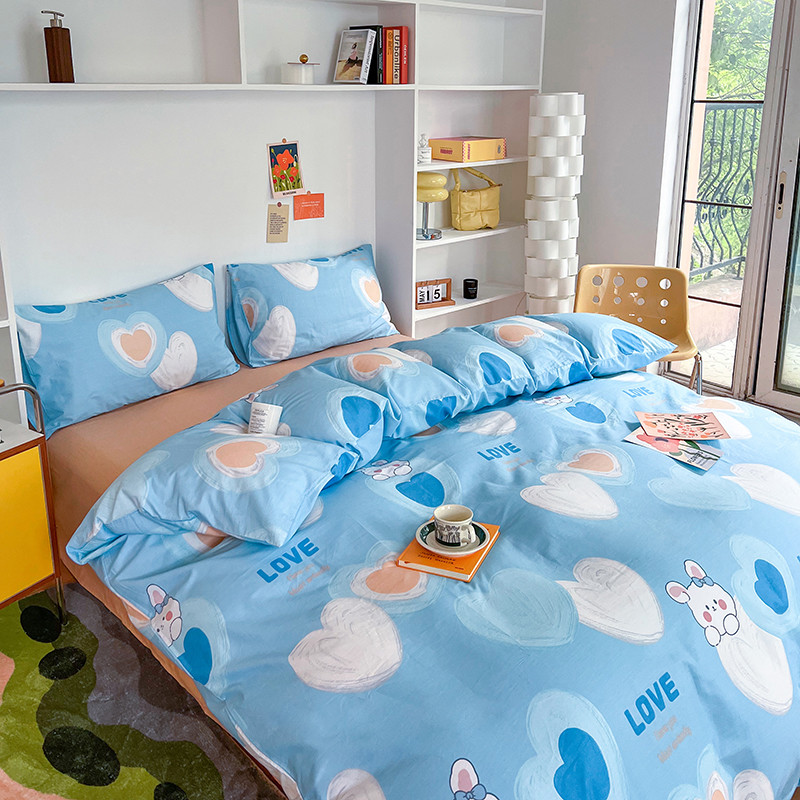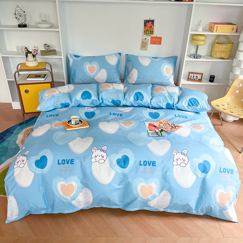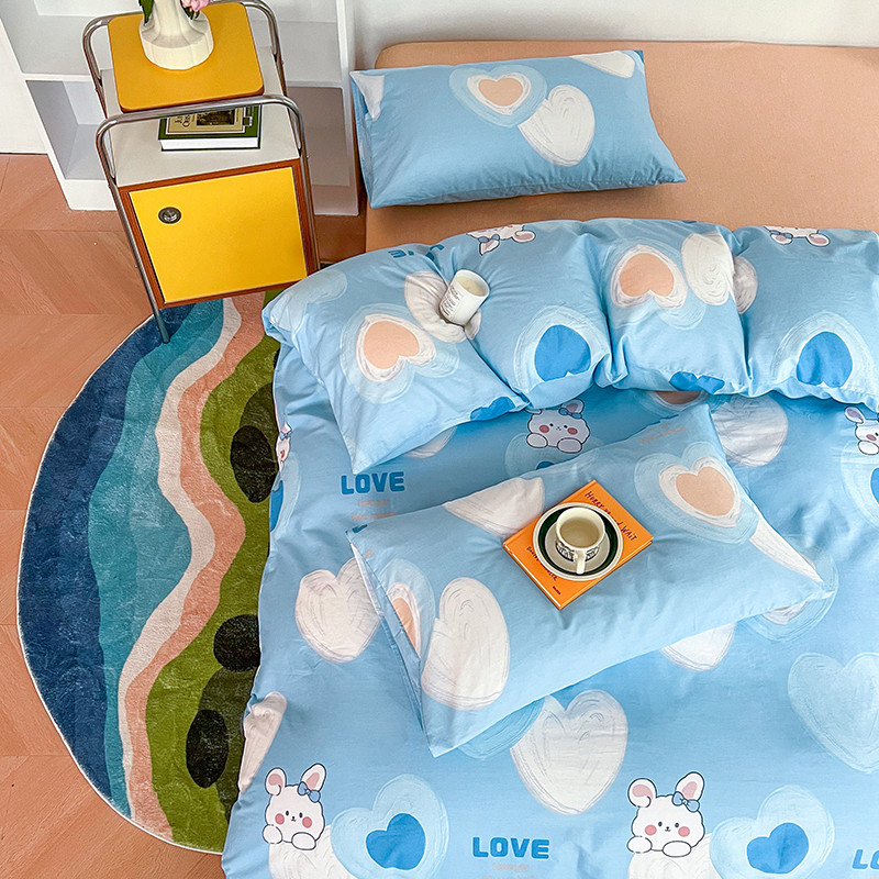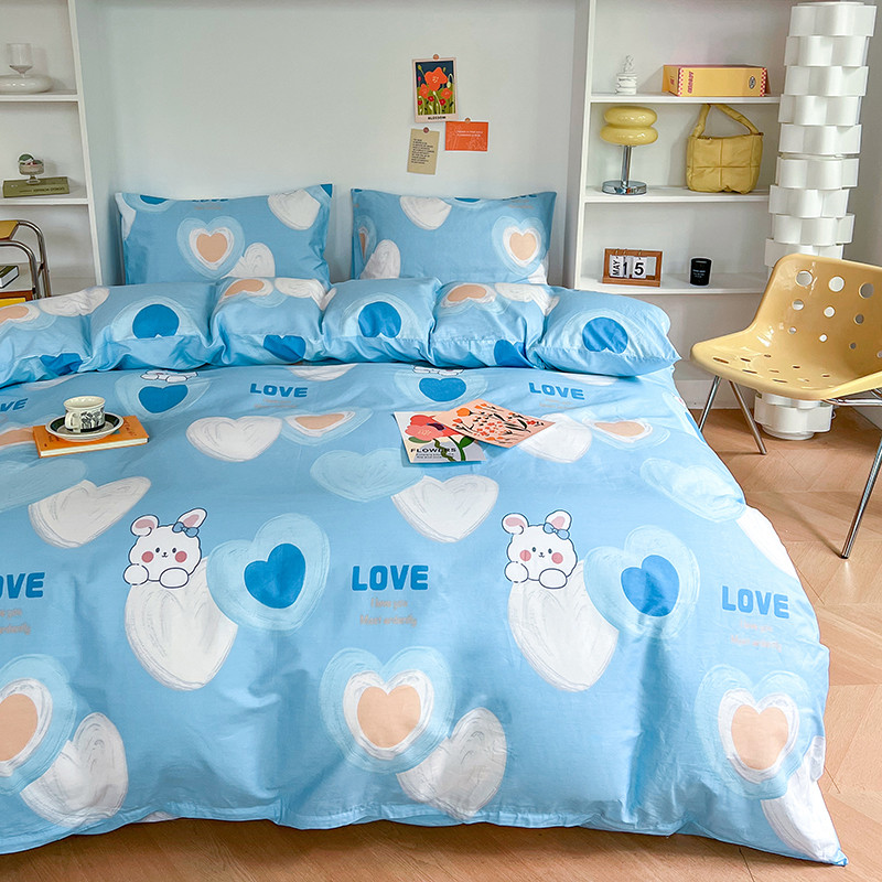 当前位置: 91家纺网 > 商品网购 > 床品套件 > 四件套 > 全棉普通四件套 > 感遇家纺 2022新款全棉印花系列四件套-第四批 蓝心小兔
