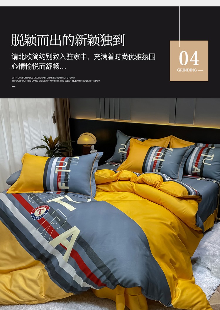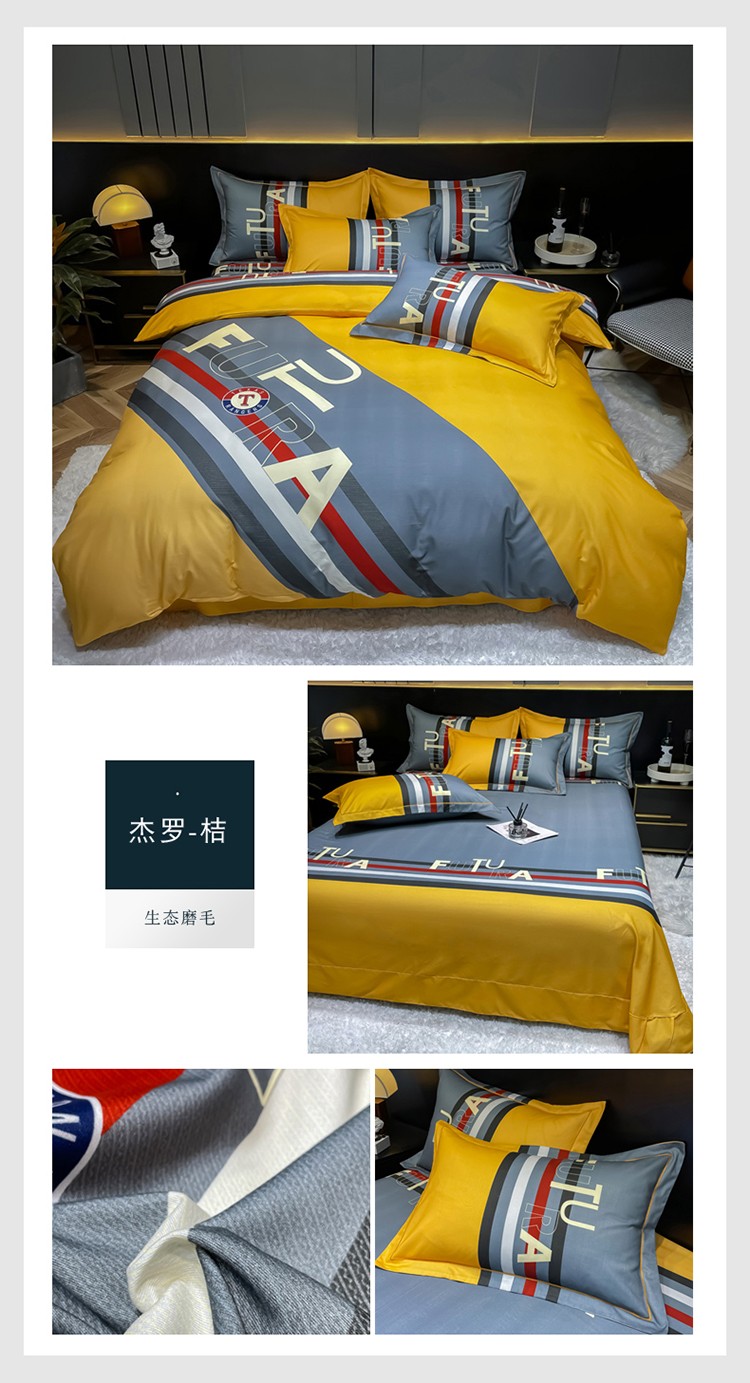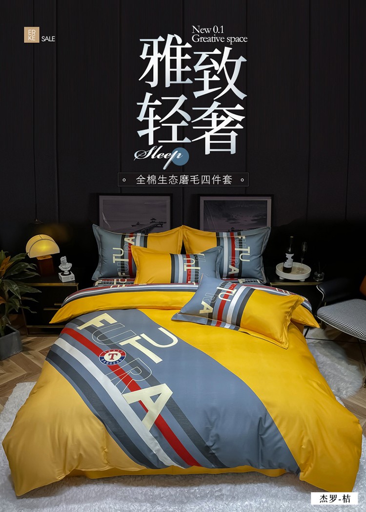 当前位置: 91家纺网 > 商品网购 > 床品套件 > 四件套 > 普通磨毛四件套 > 金爱家 2023新款大阪纯棉生态磨毛条格简约系列四件套 杰罗-桔