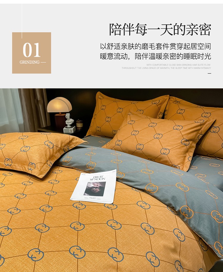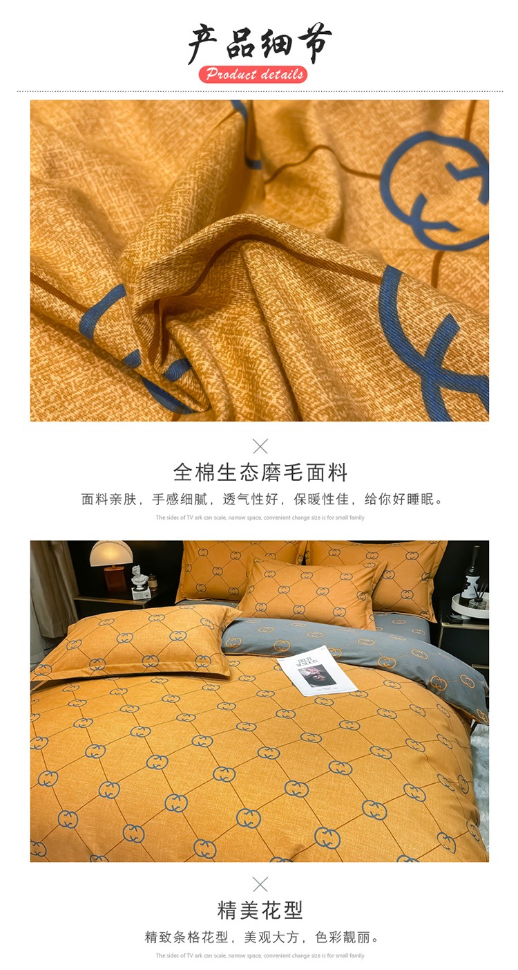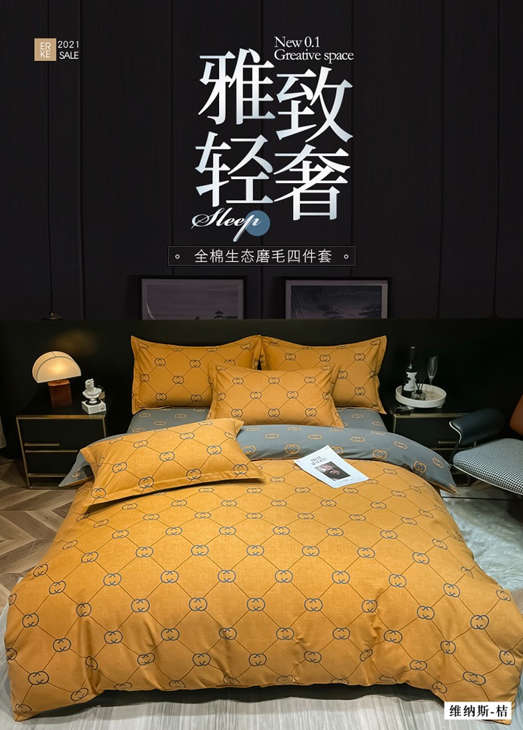 当前位置: 91家纺网 > 商品网购 > 床品套件 > 四件套 > 普通磨毛四件套 > 金爱家 2023新款大阪纯棉生态磨毛条格简约系列四件套 维纳斯-桔