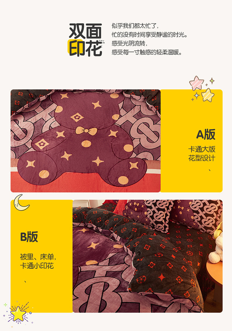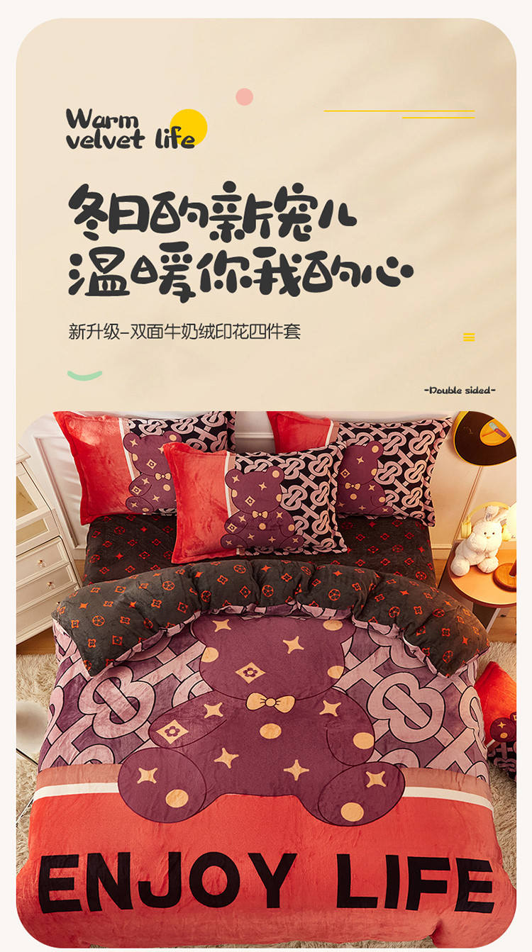 当前位置: 91家纺网 > 商品网购 > 床品套件 > 四件套 > 法莱绒四件套 > 2024新款卡通法莱绒牛奶绒珊瑚绒四件套升级版幸运熊-升级款