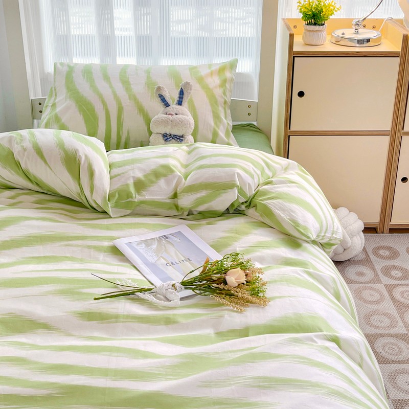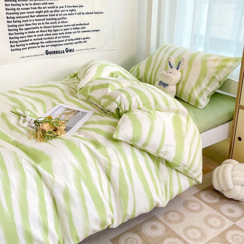 (总)昔可 2023新款全棉ins格子混搭系列四件套,ins简约绿格,粉蓝格,开心果格,学院格纹,粉绿格,海盐兰格,黄绿格,夏日蓝条,芝士黄条,紫芋泥芝士格