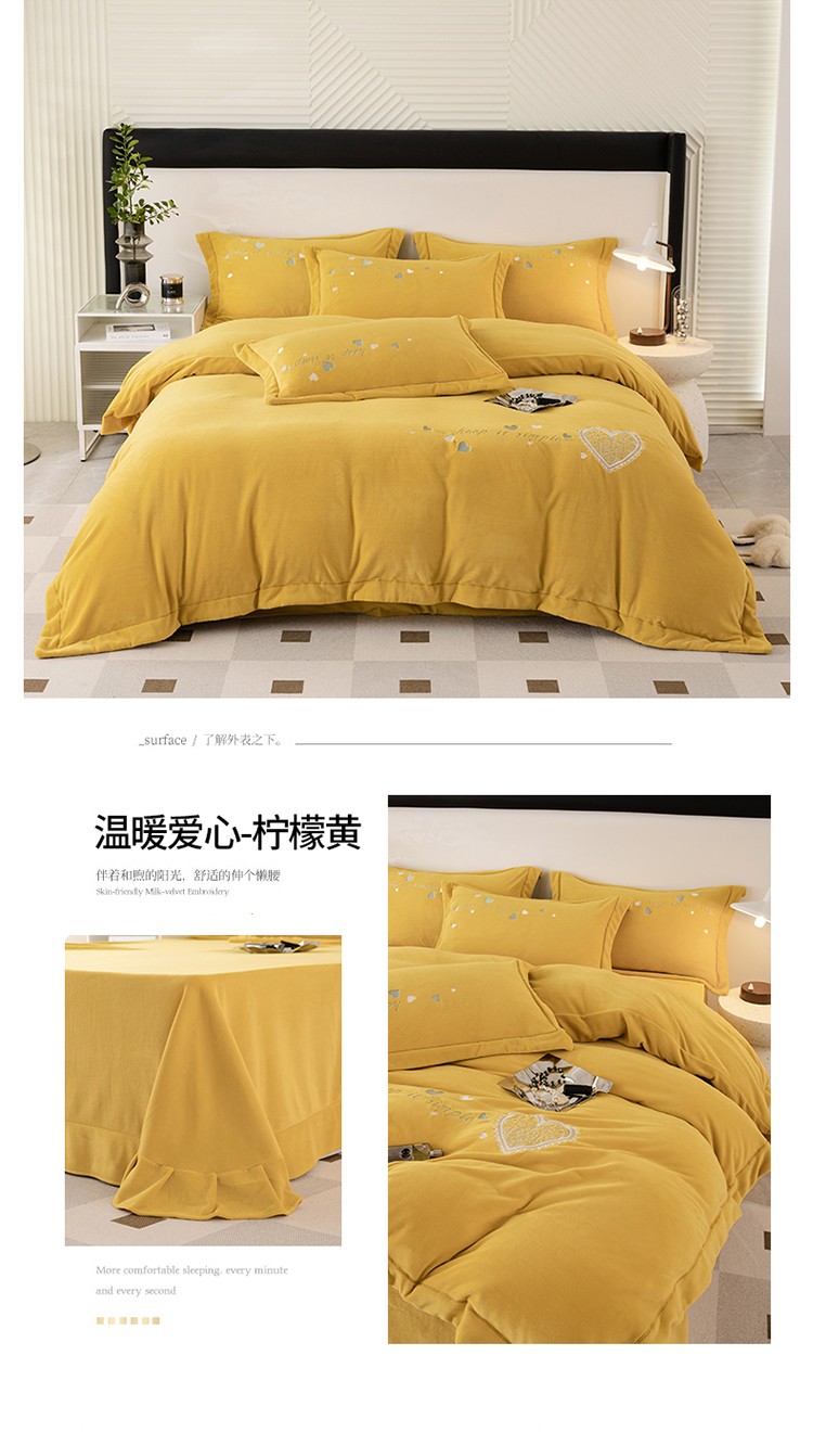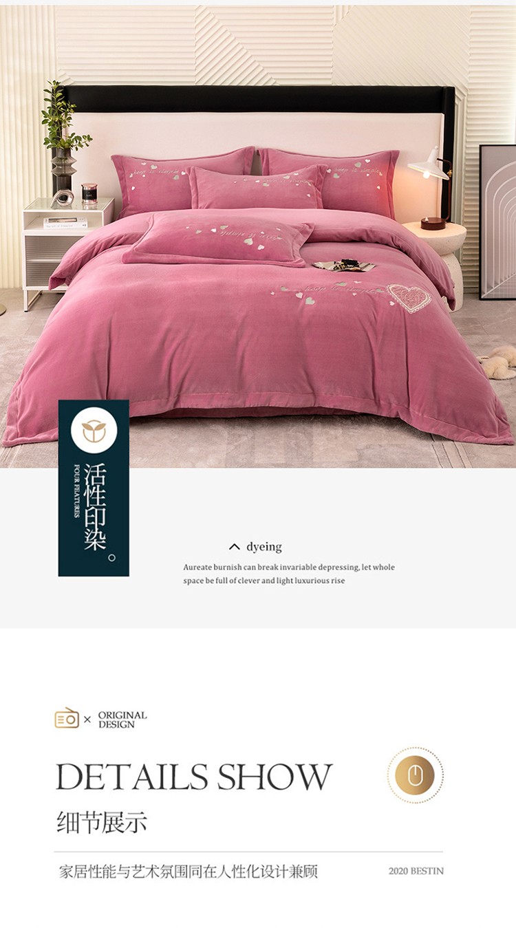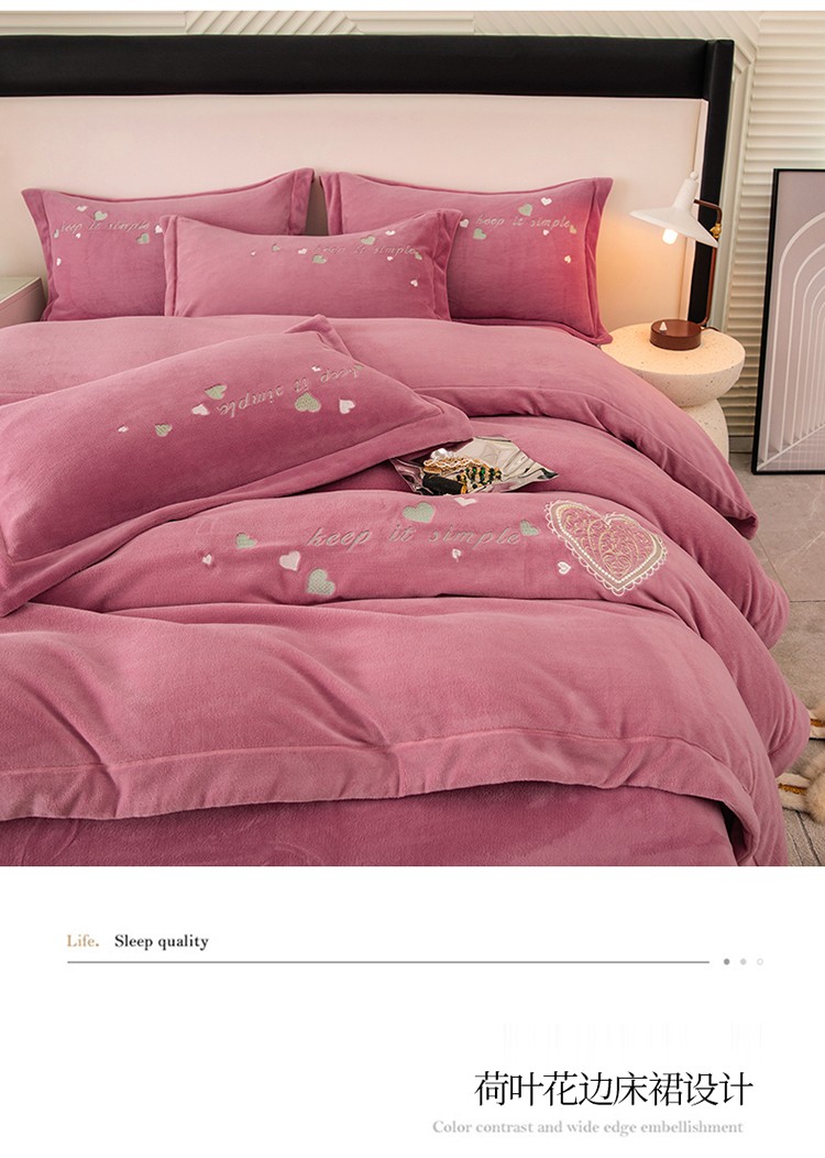 (总)绒博士 2022新款牛奶绒刺绣压线款四件套-温暖爱心