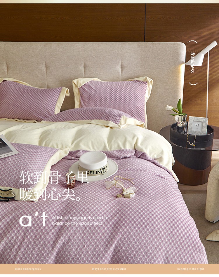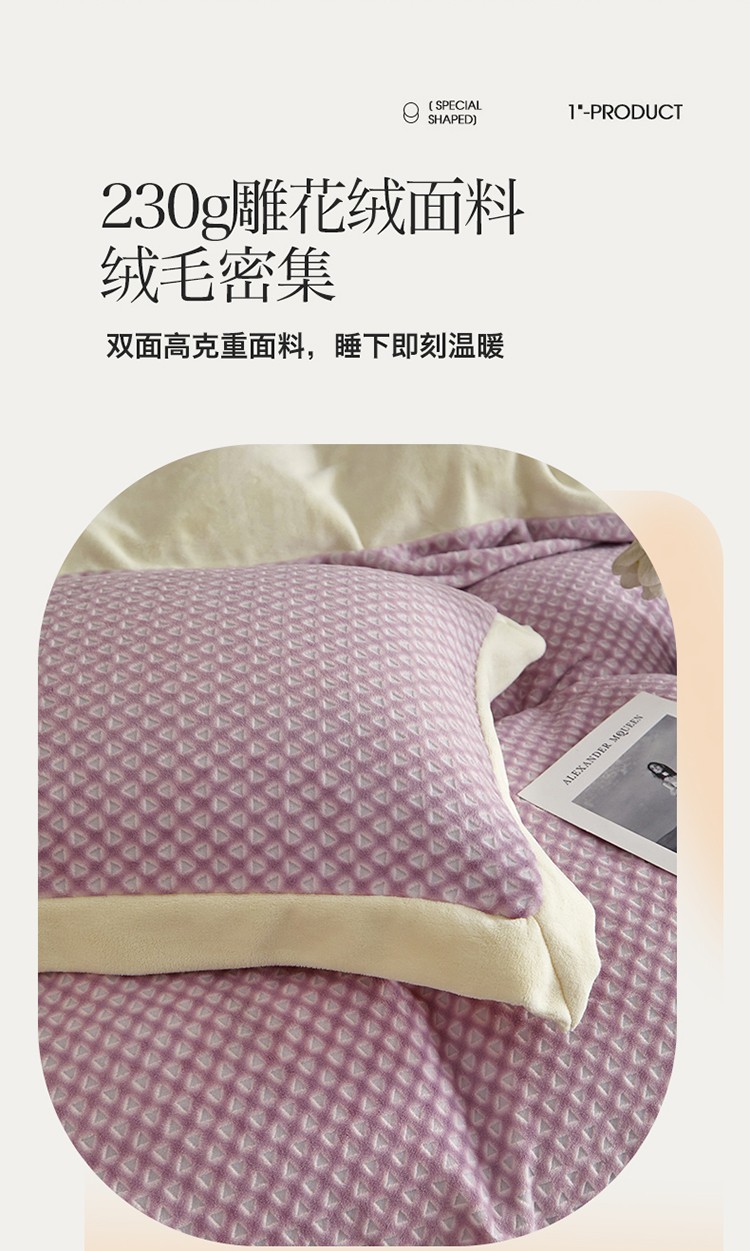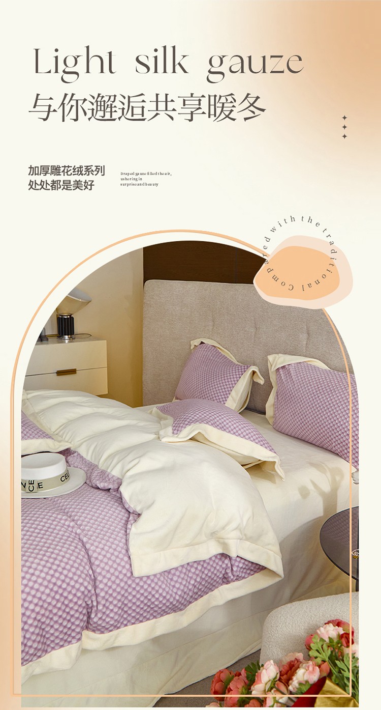 商品名称:名品优仓 2022新款加厚雕花绒系列四件套-都市生活 幸福紫