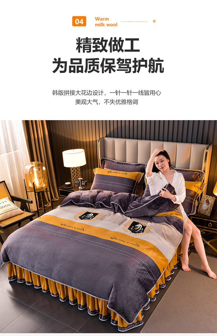 韩秀2024新款金貂牛奶法莱绒床裙款四件套加厚保暖8.5斤潮流时尚