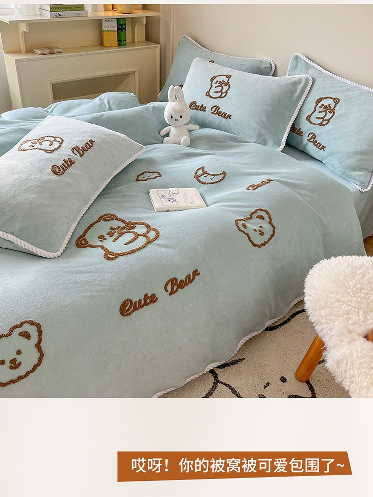 (总)芯贝儿 2025款加厚小清新花边牛奶绒卡通四件套,Q萌小熊,花园狗,蓝格小狗,萌宠派对,南瓜抱抱熊,甜心猫咪,星星宠物,元气猫咪,周末宠物园