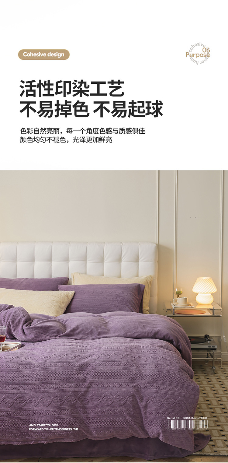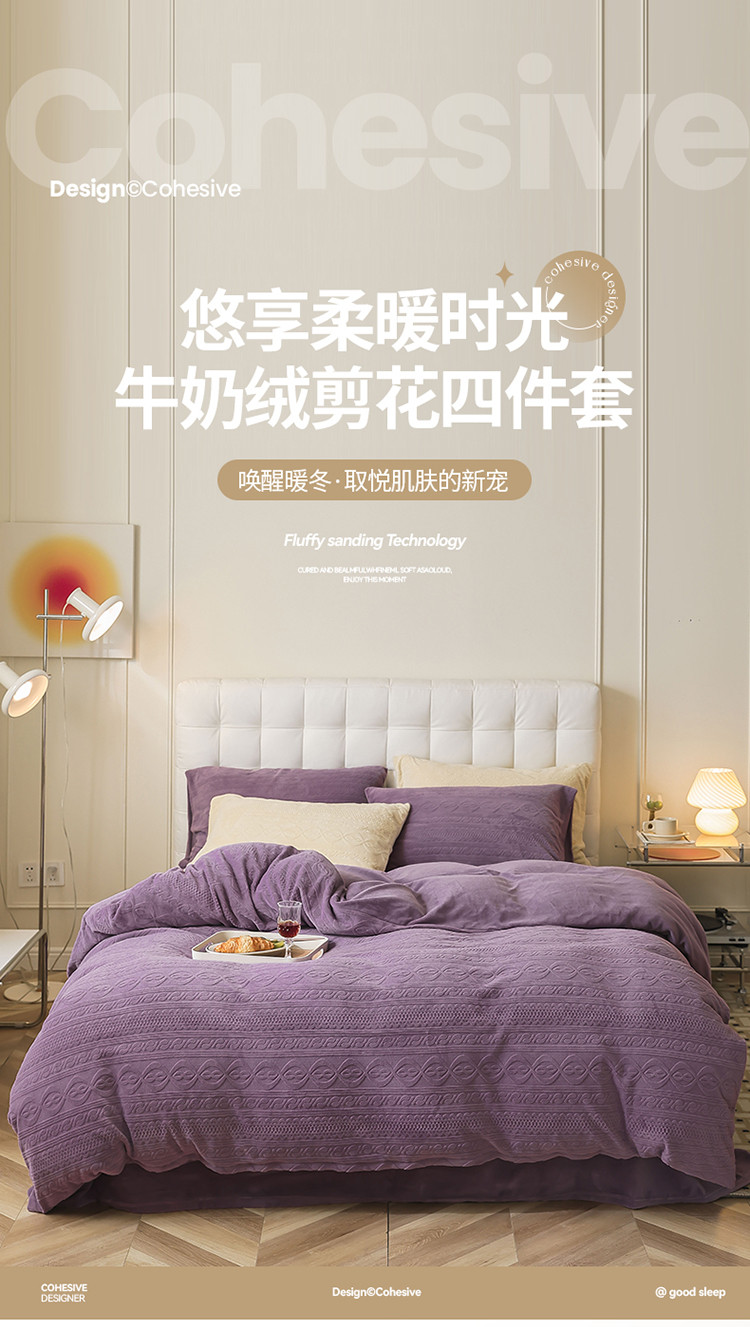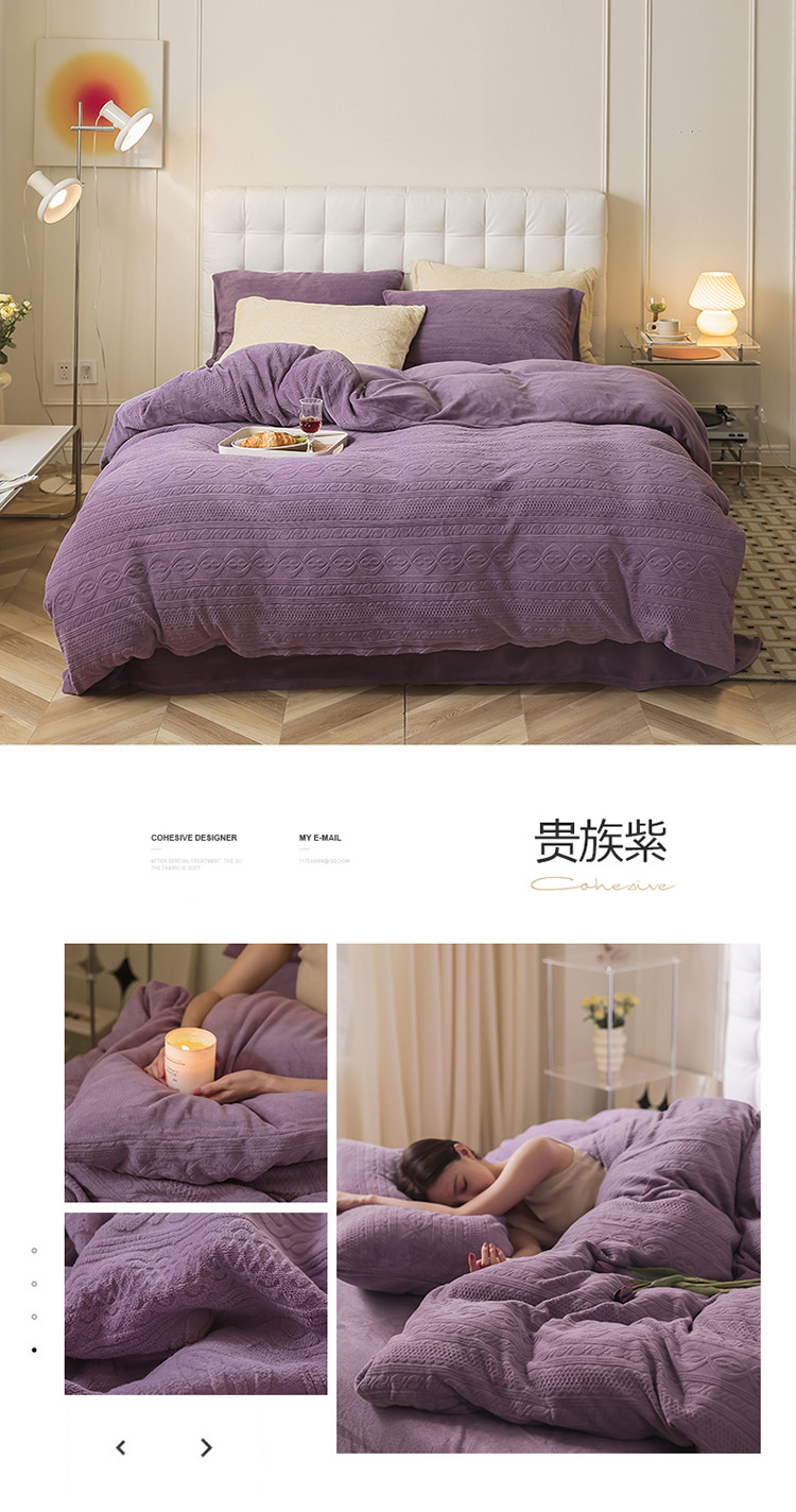 当前位置: 91家纺网 > 商品网购 > 床品套件 > 四件套 > 牛奶绒四件套 > 寐眠 2022新款牛奶绒剪花四件套 贵族紫