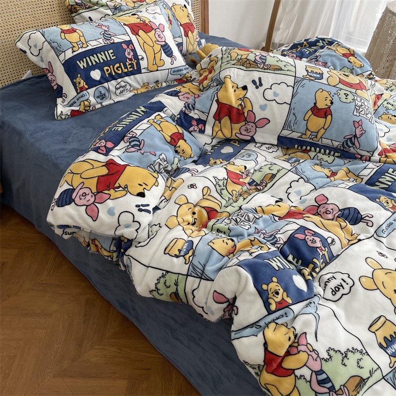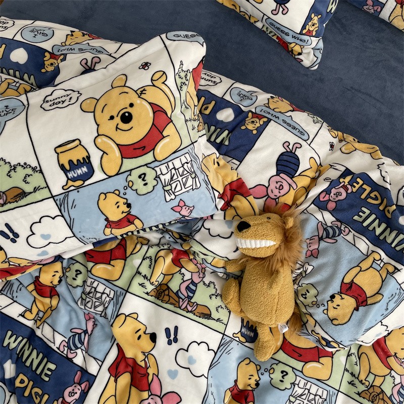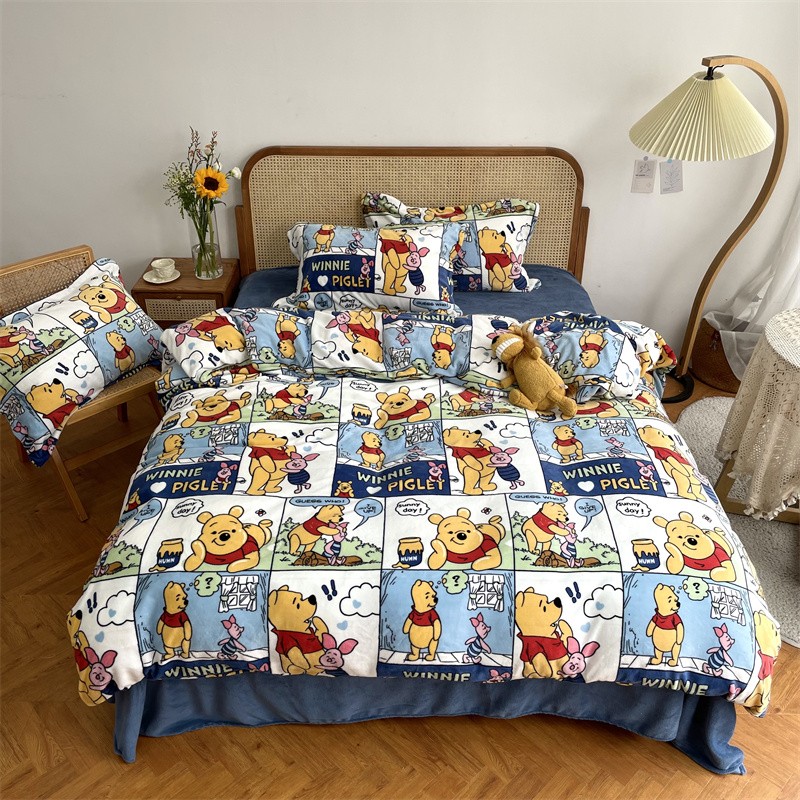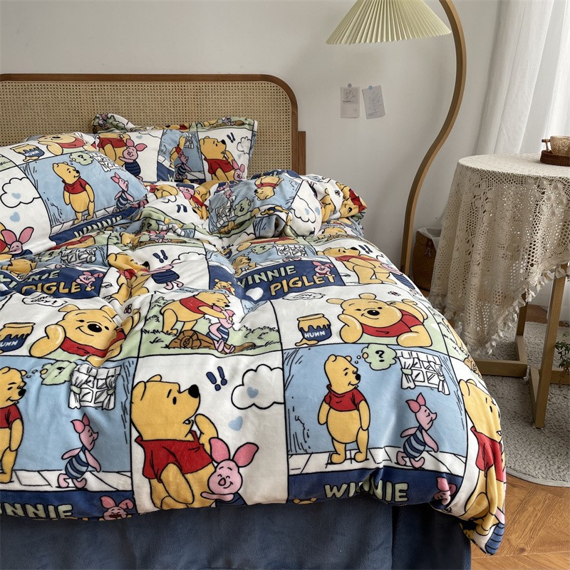 源启生活 新款230g全消光高克重牛奶绒四件套 维尼陪伴