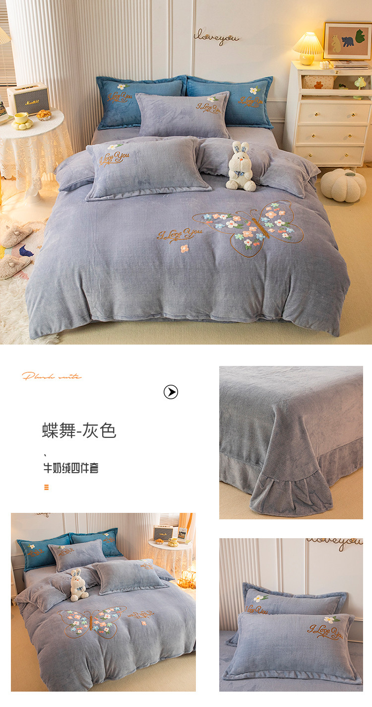 商品名称:(总)纽缦 2022新款牛奶绒四件套蝶舞系列